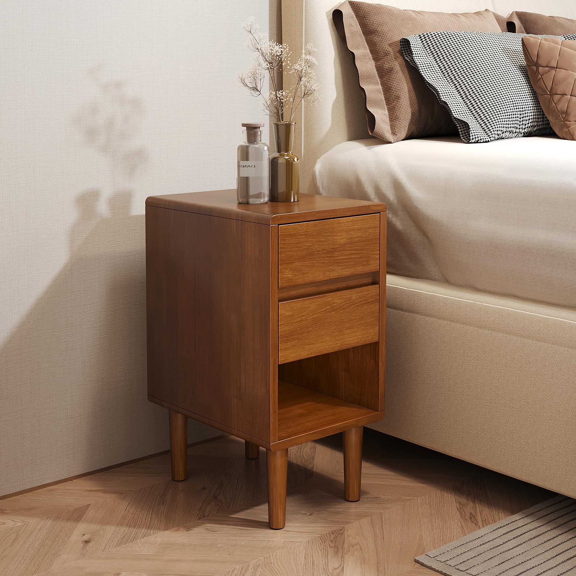 Mesita de noche estrecha con 2 cajones con estante abierto, mesita de noche estrecha de madera maciza, mesita de noche moderna de