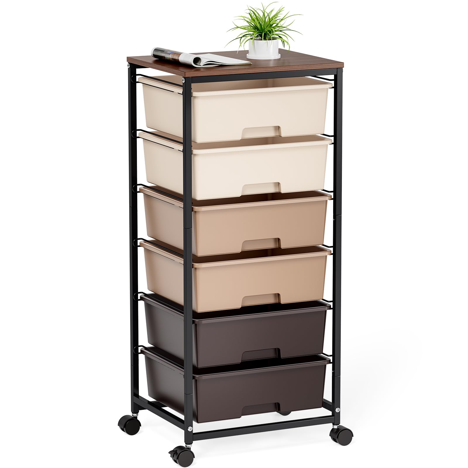 Carrito de almacenamiento con ruedas con 6 cajones y mesa de madera, carrito organizador móvil para suministros de manualidades, o
