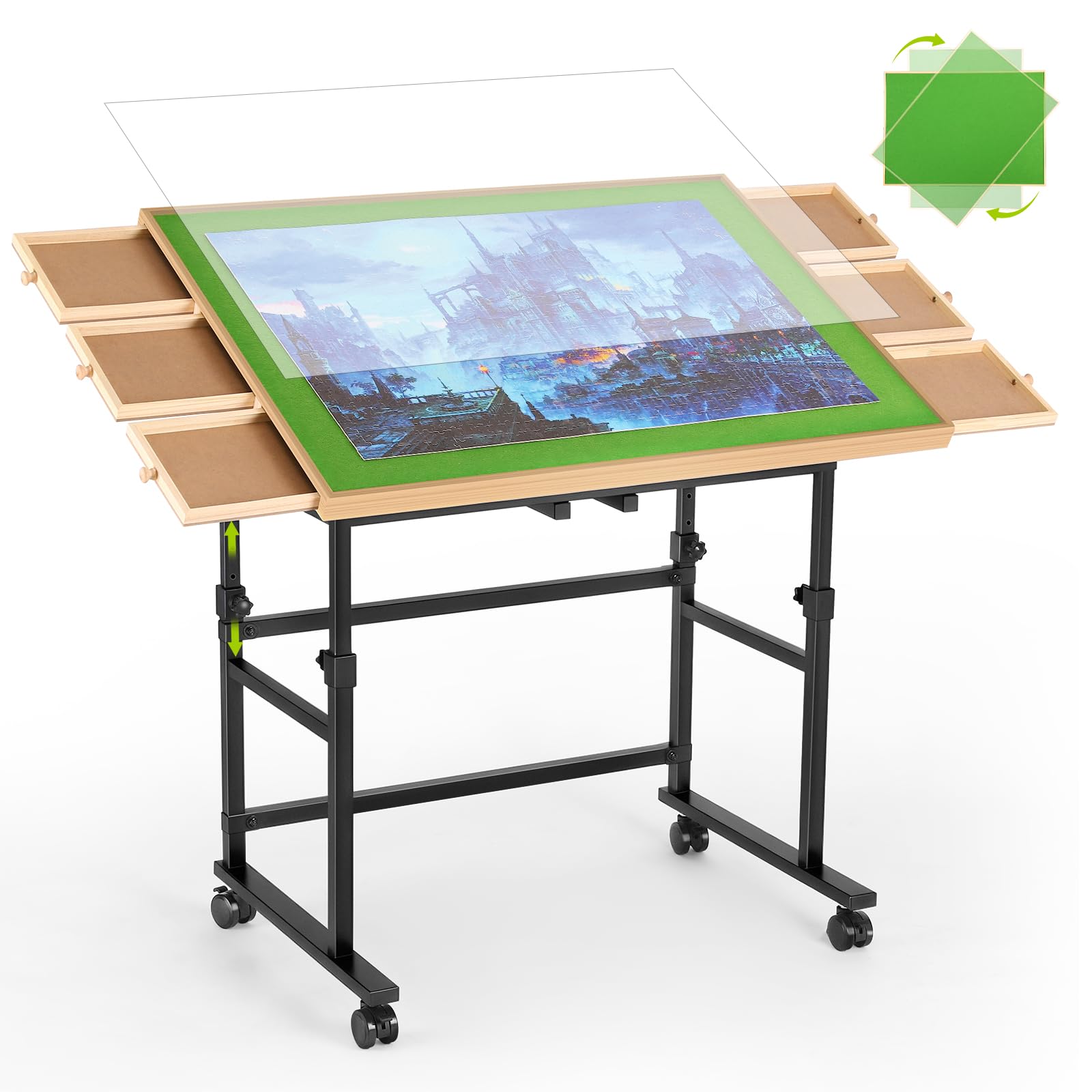 Mesa de rompecabezas de 1500 piezas con Susan perezosa de metal, tablero giratorio de altura ajustable con patas para adultos, tab