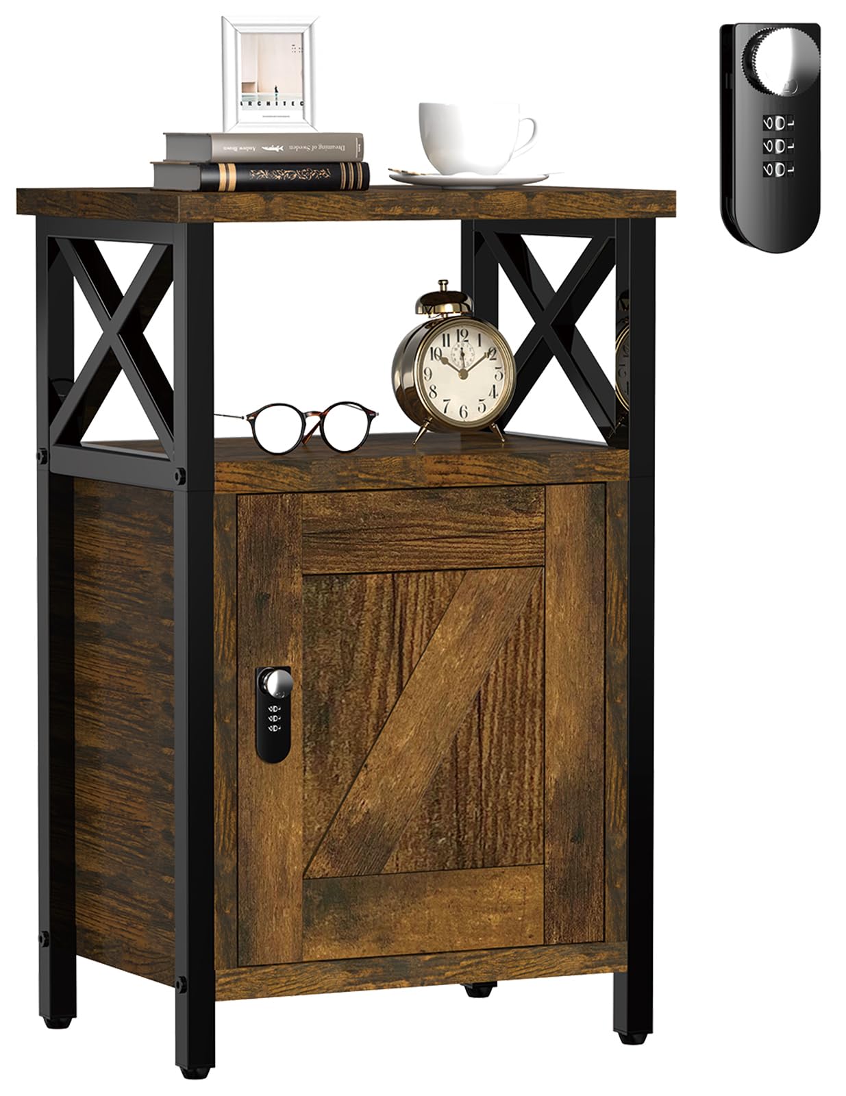 Mesita de noche con cajón de bloqueo, mesita de noche con cajones, mesa auxiliar de cama de madera con almacenamiento, mesita de n