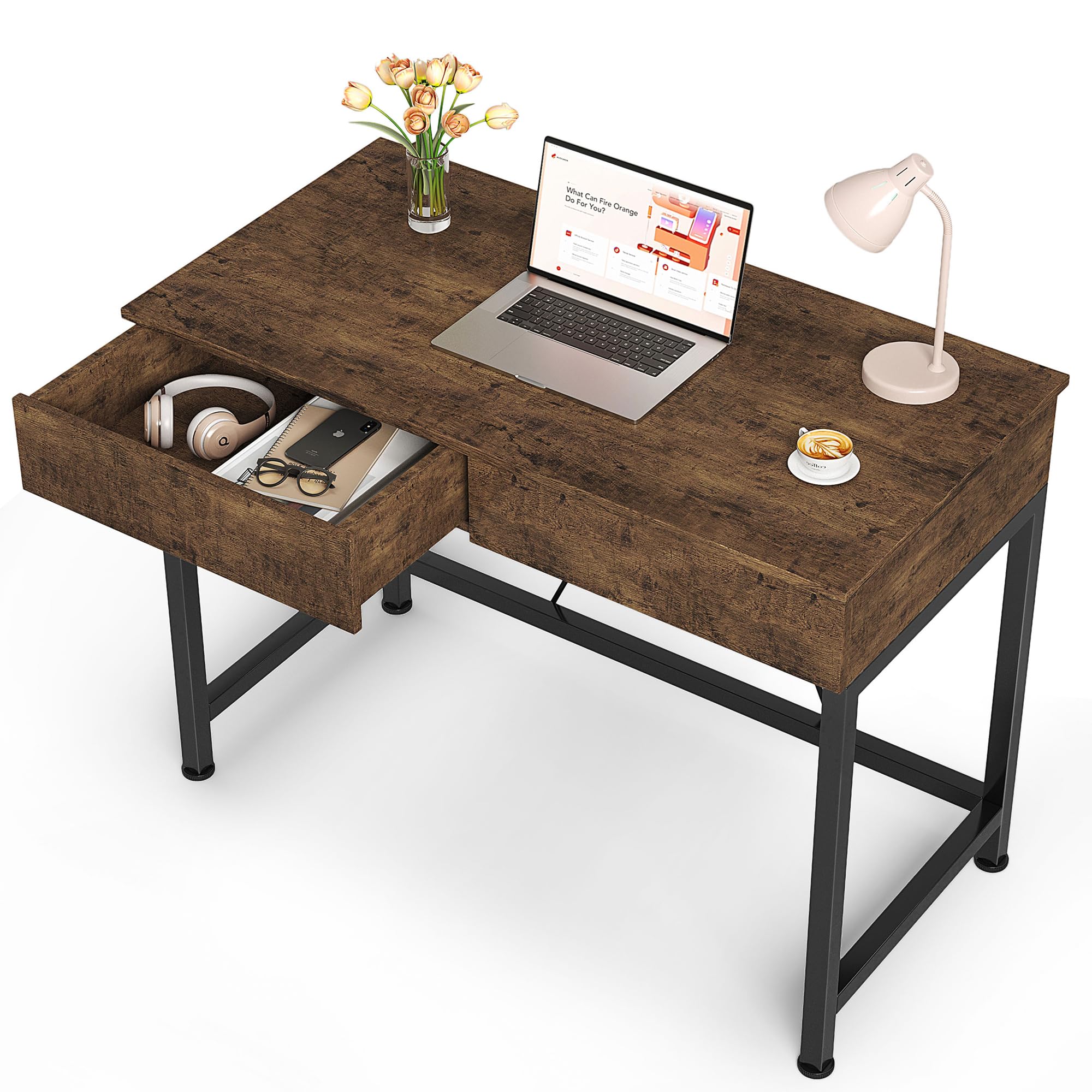 Mexin Escritorio pequeño con 2 cajones de madera, escritorio de escritura para oficina en casa de 40 pulgadas, escritorio de tocad