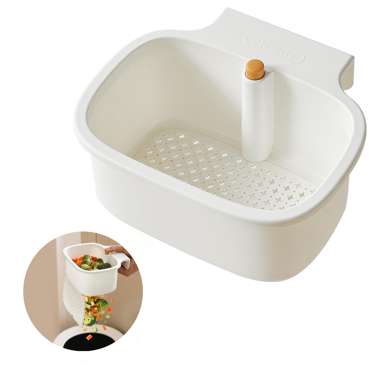 Kitchen Sink Drain Strainer Basket – Hanging Sink Drain Basket with One-Touch Drain Mesh, Kitchen Sink Food Catcher Basket Storage