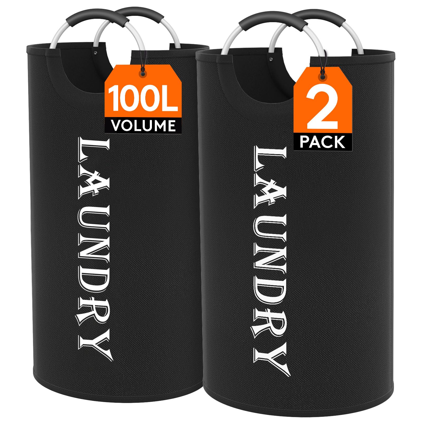 Lifewit Paquete de 2 cestas grandes de lavandería de 100 litros, canastas plegables con asas de aluminio, impermeables, independie