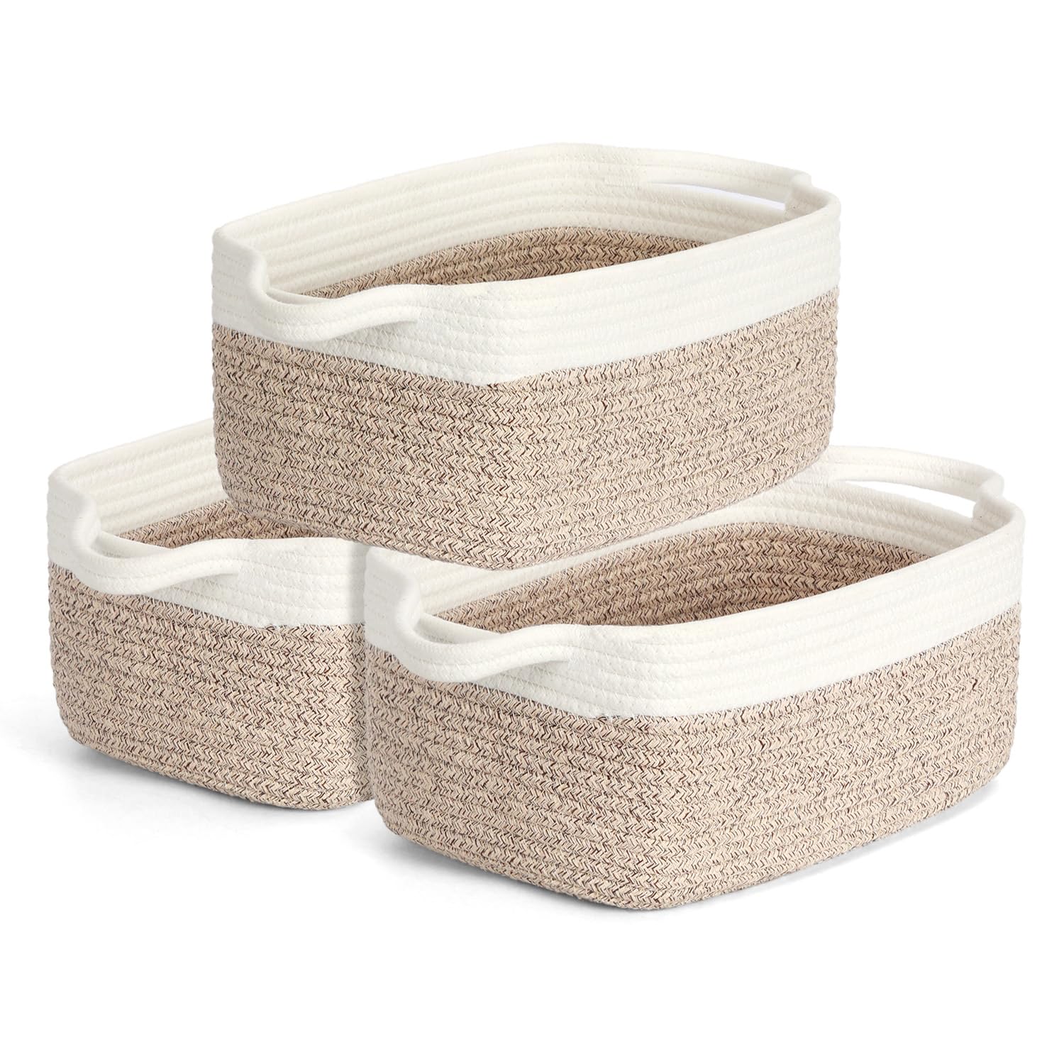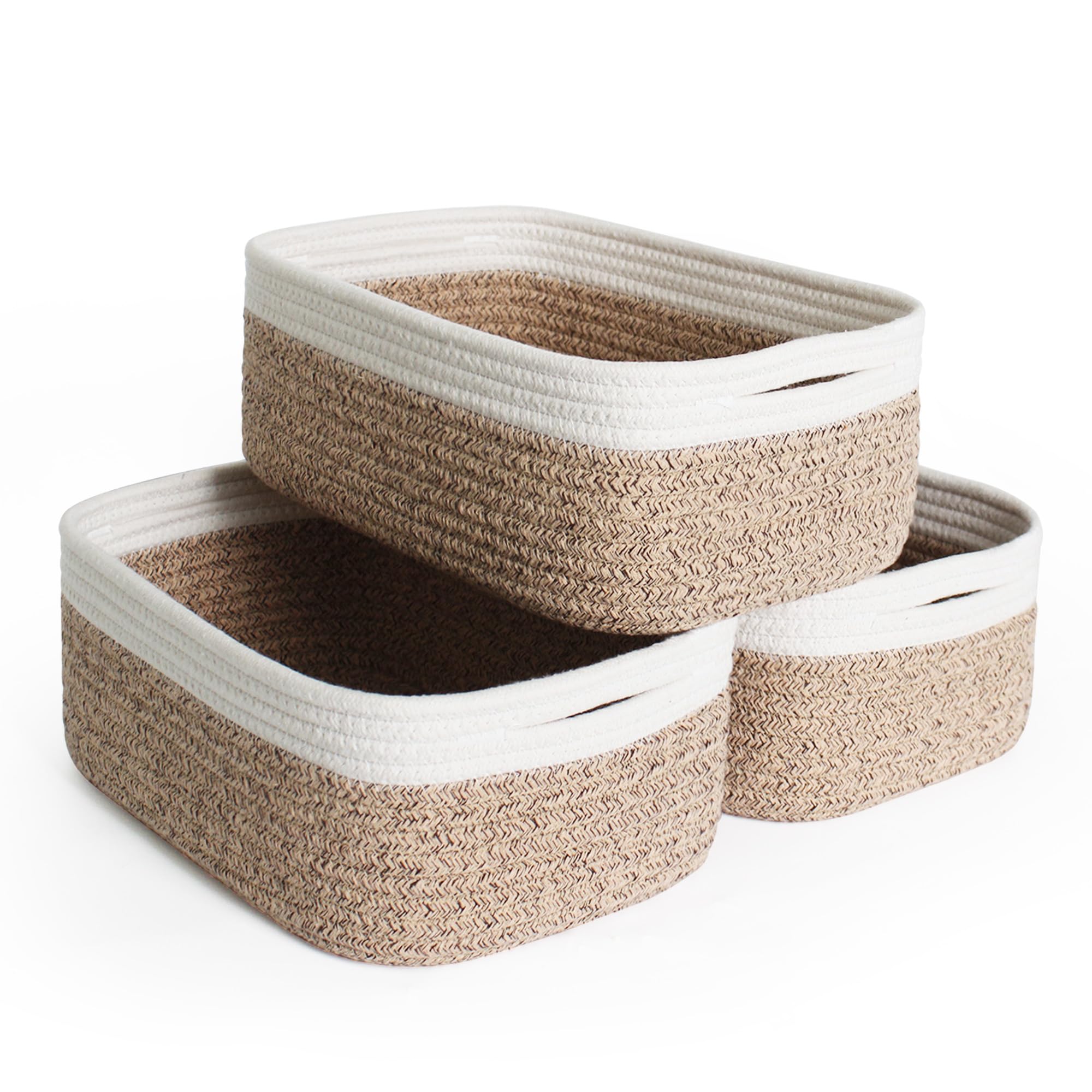 Cestas de almacenamiento de 11.81 x 7.87 x 4.72 pulgadas para estantes, paquete de 3 cestas pequeñas de cuerda de algodón tejidas
