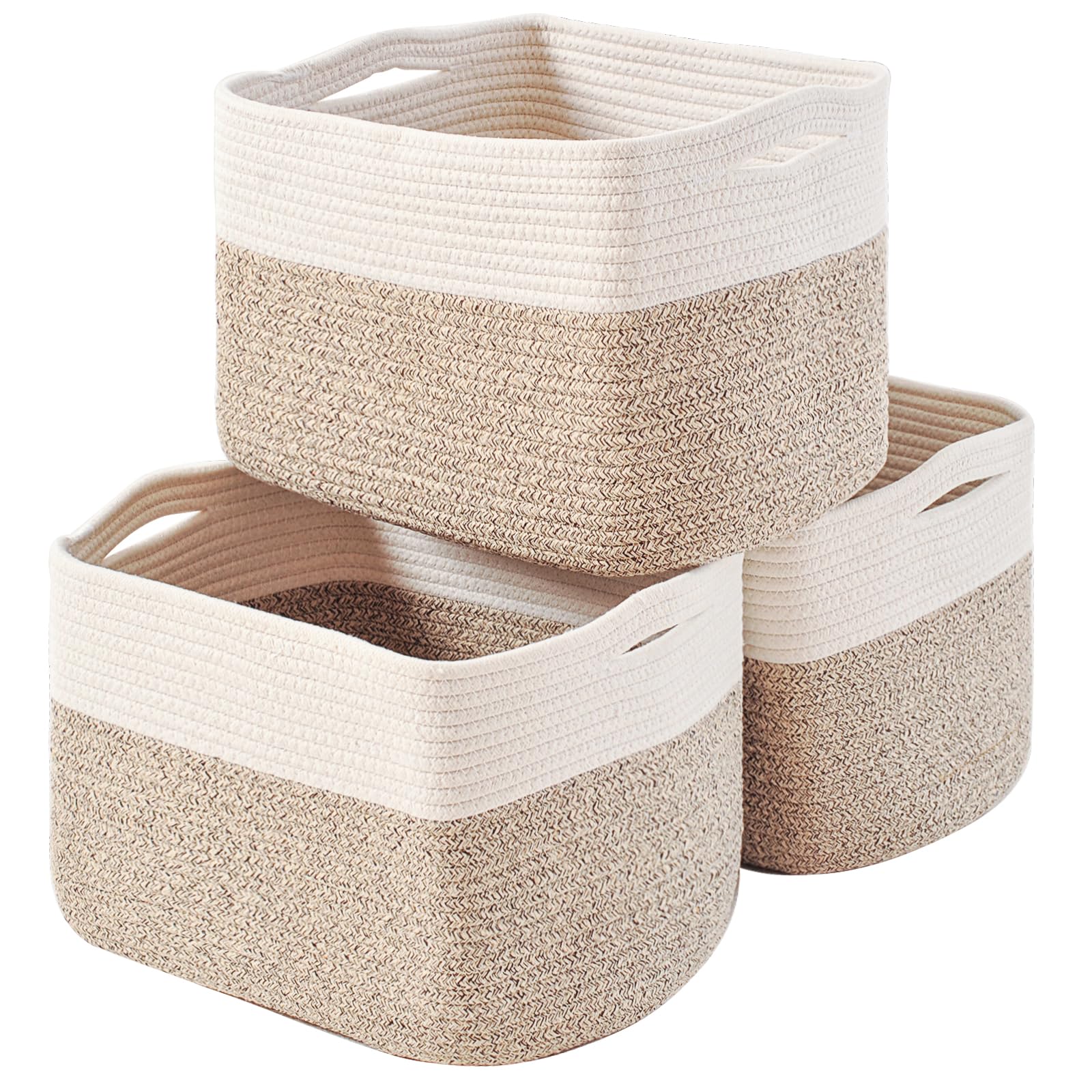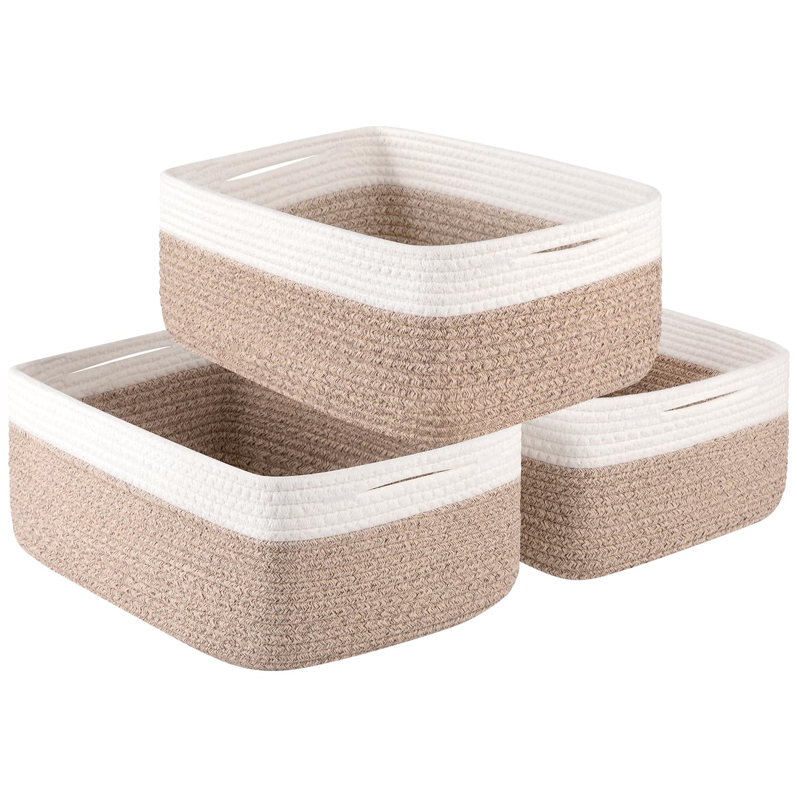 Cestas de almacenamiento para organizar 3 unidades, cestas tejidas para estantes, contenedores organizadores de armario, cesta de