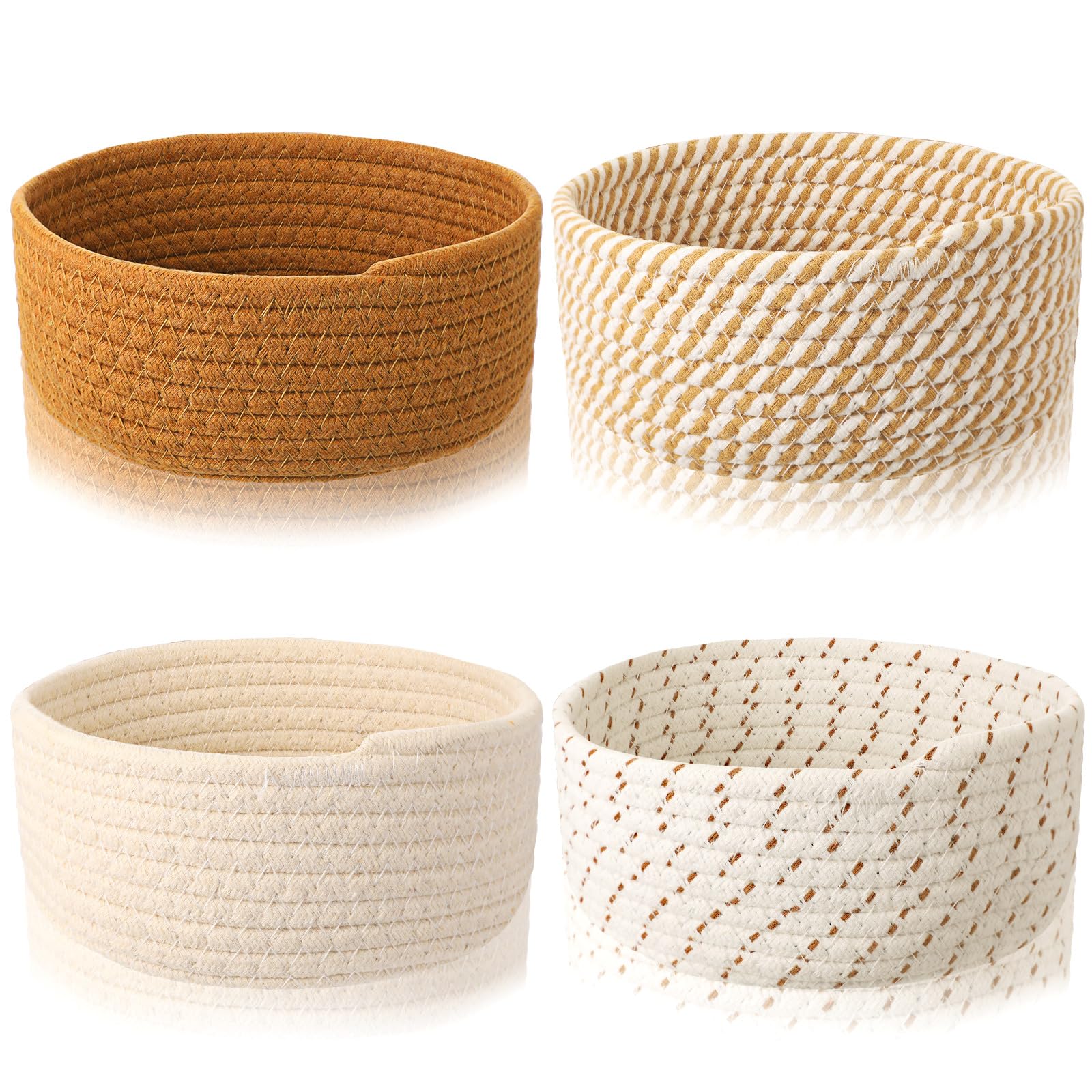 Boao 4 cestas pequeñas de cuerda de algodón tejidas para regalos, estantes bohemios vacíos, para armario, cestas de almacenamiento
