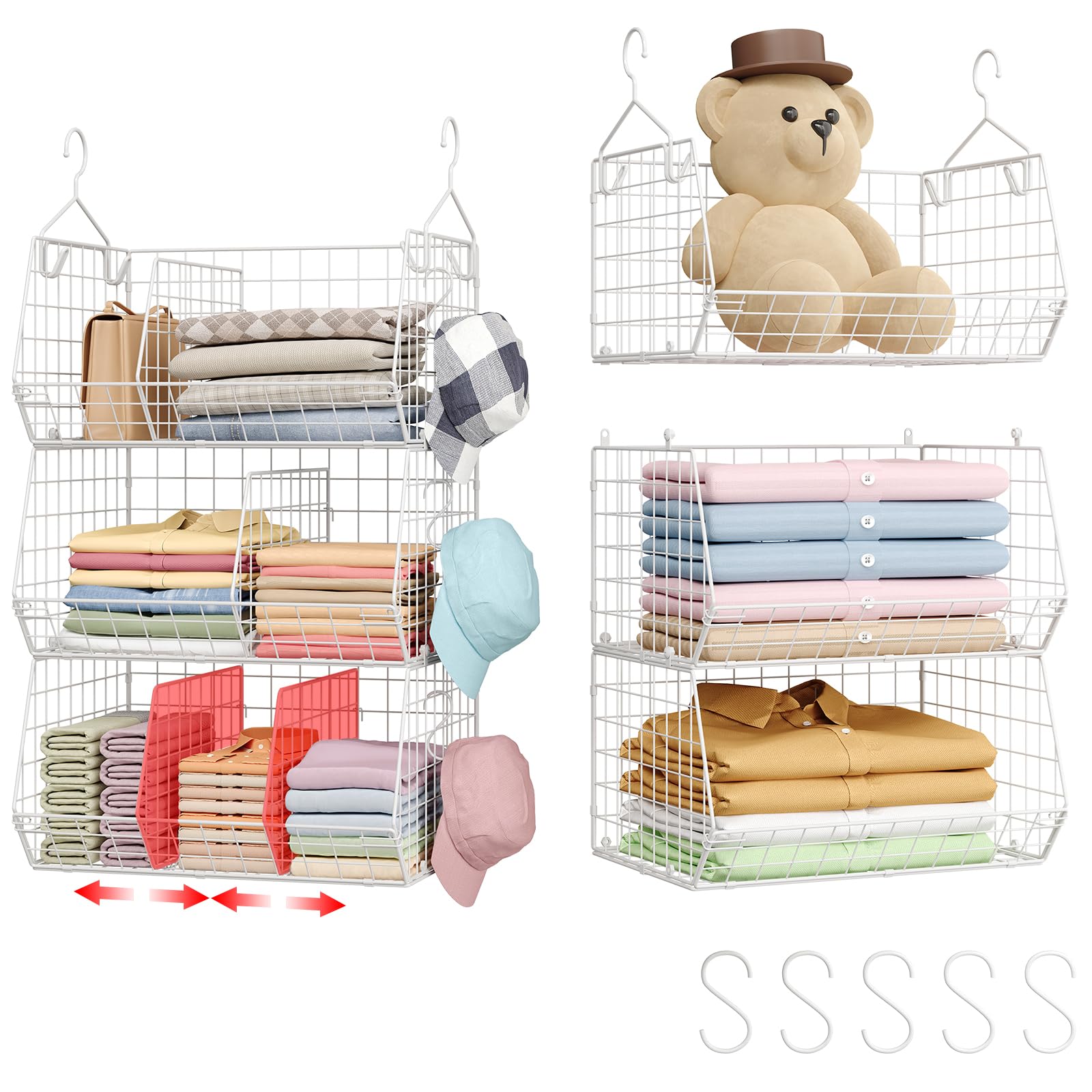 Estantes colgantes de armario extra grandes de 3 niveles con divisor, 16.5 pulgadas de largo x 11.8 pulgadas de ancho x 33.6 pulga