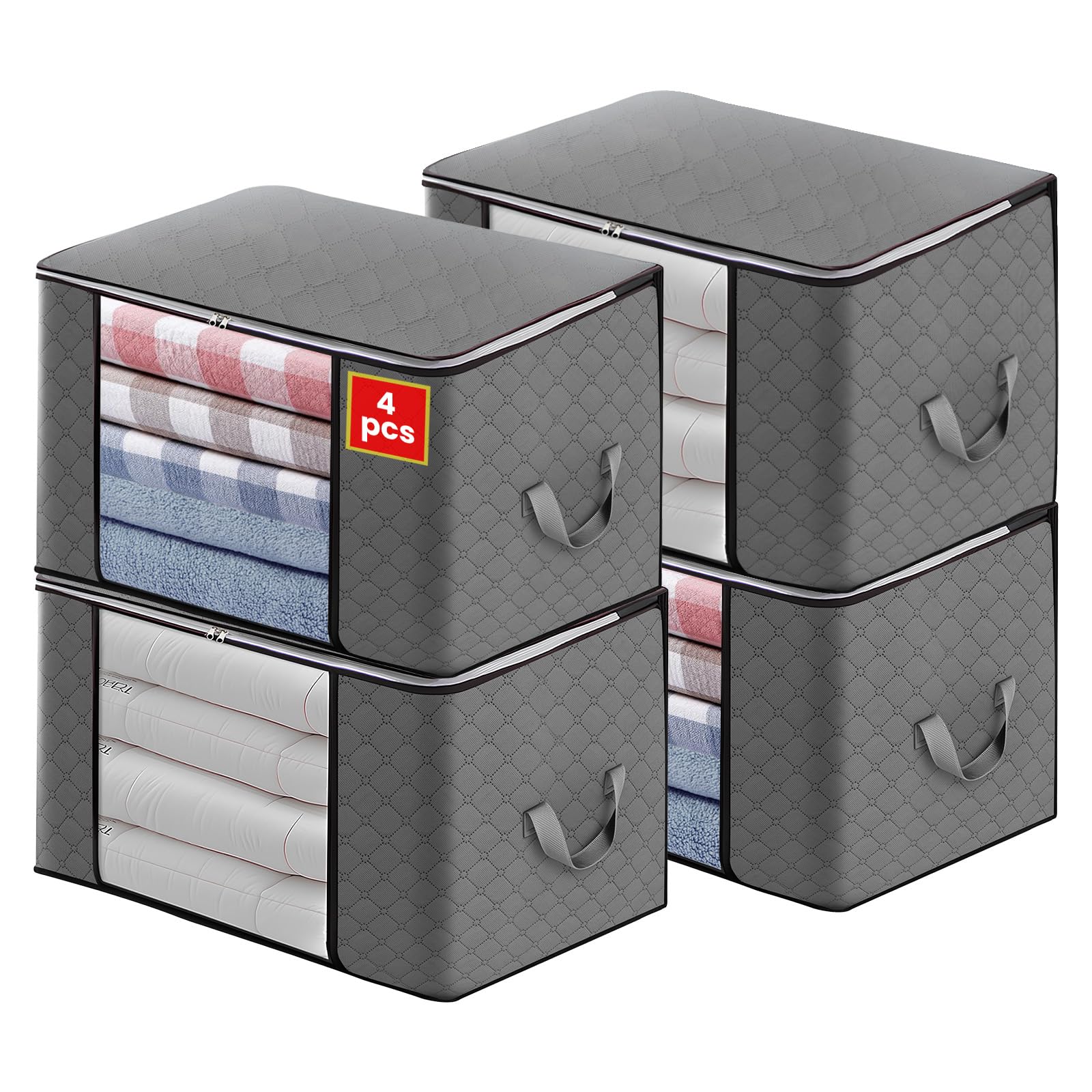 Paquete de 4 bolsas de almacenamiento plegables y con cremallera, contenedores para organizar dormitorio, armario, ropa, edredón,