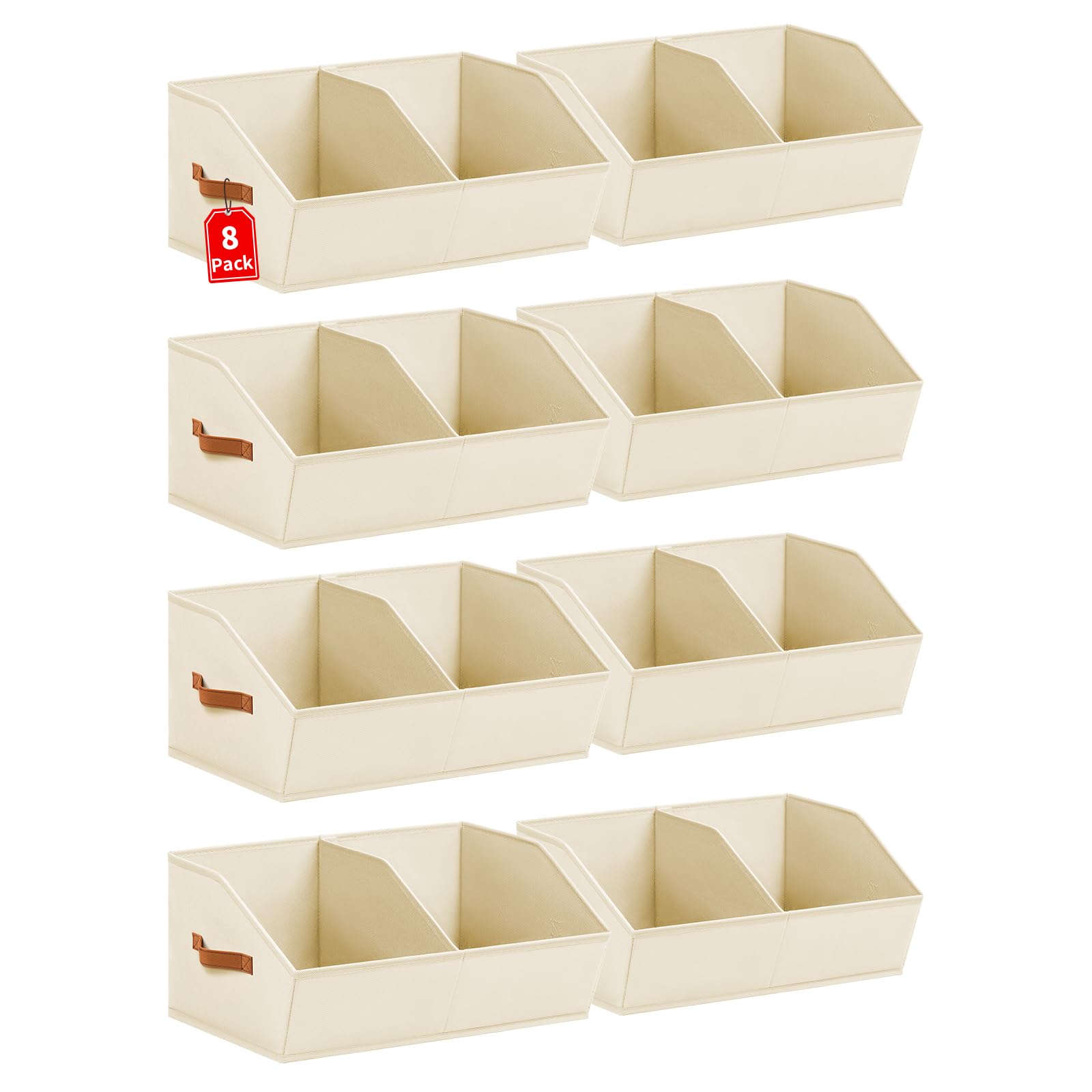 Organizadores de armario y contenedores de almacenamiento, paquete de 8 cubos trapezoidales divididos plegables con mango naranja