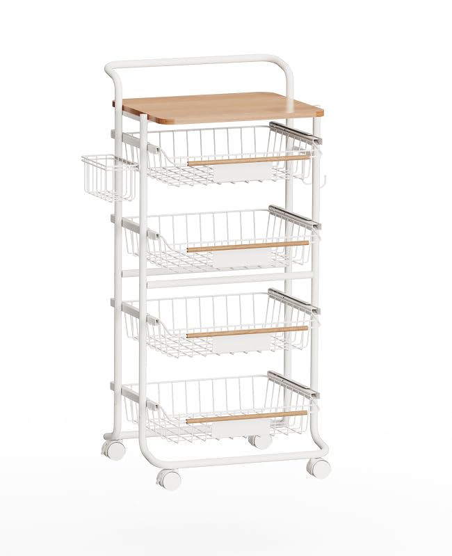 5-Tier Kitchen Organizer and Storage Cart, with Pull-Out Baskets and Wood Top, Rolling Pantry Kitchen Cart, for Fruit Potato Onion