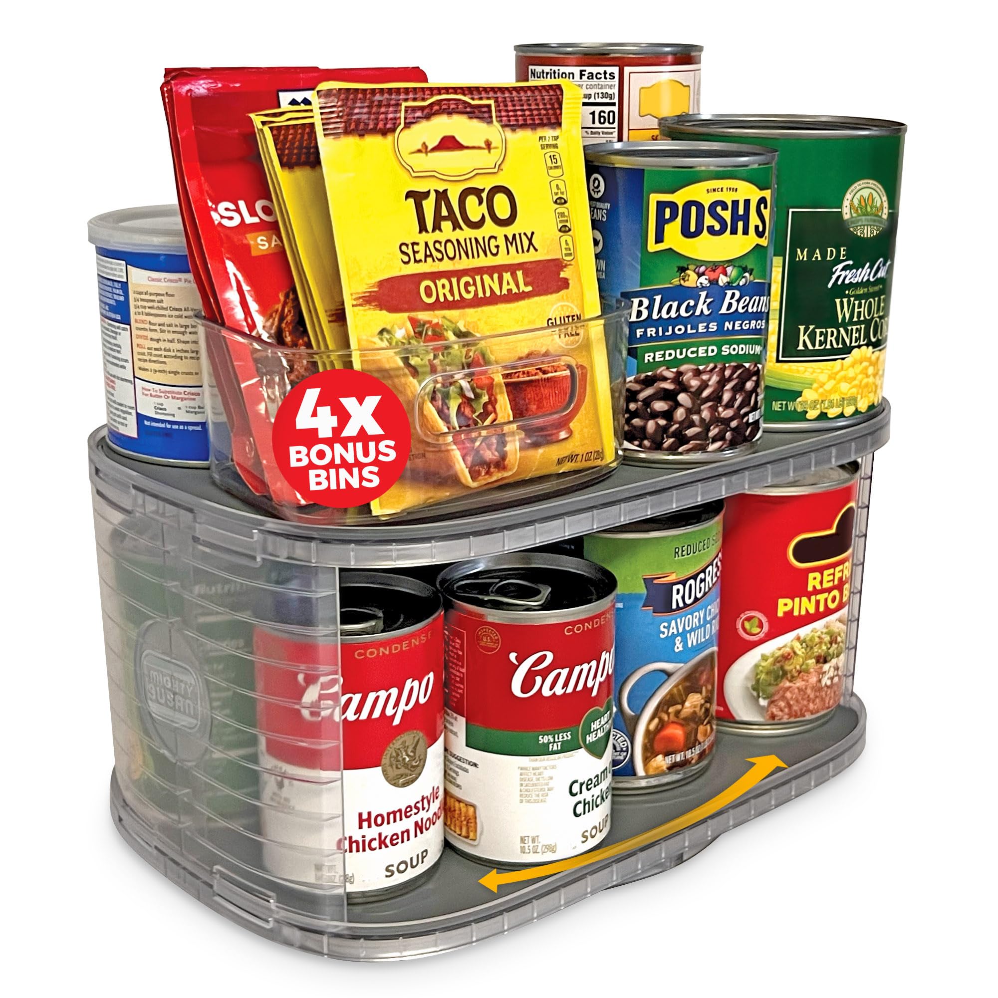 Mighty Susan Organizador de cocina para productos enlatados: organizador giratorio robusto de 2 niveles para armario/despensa. Ace