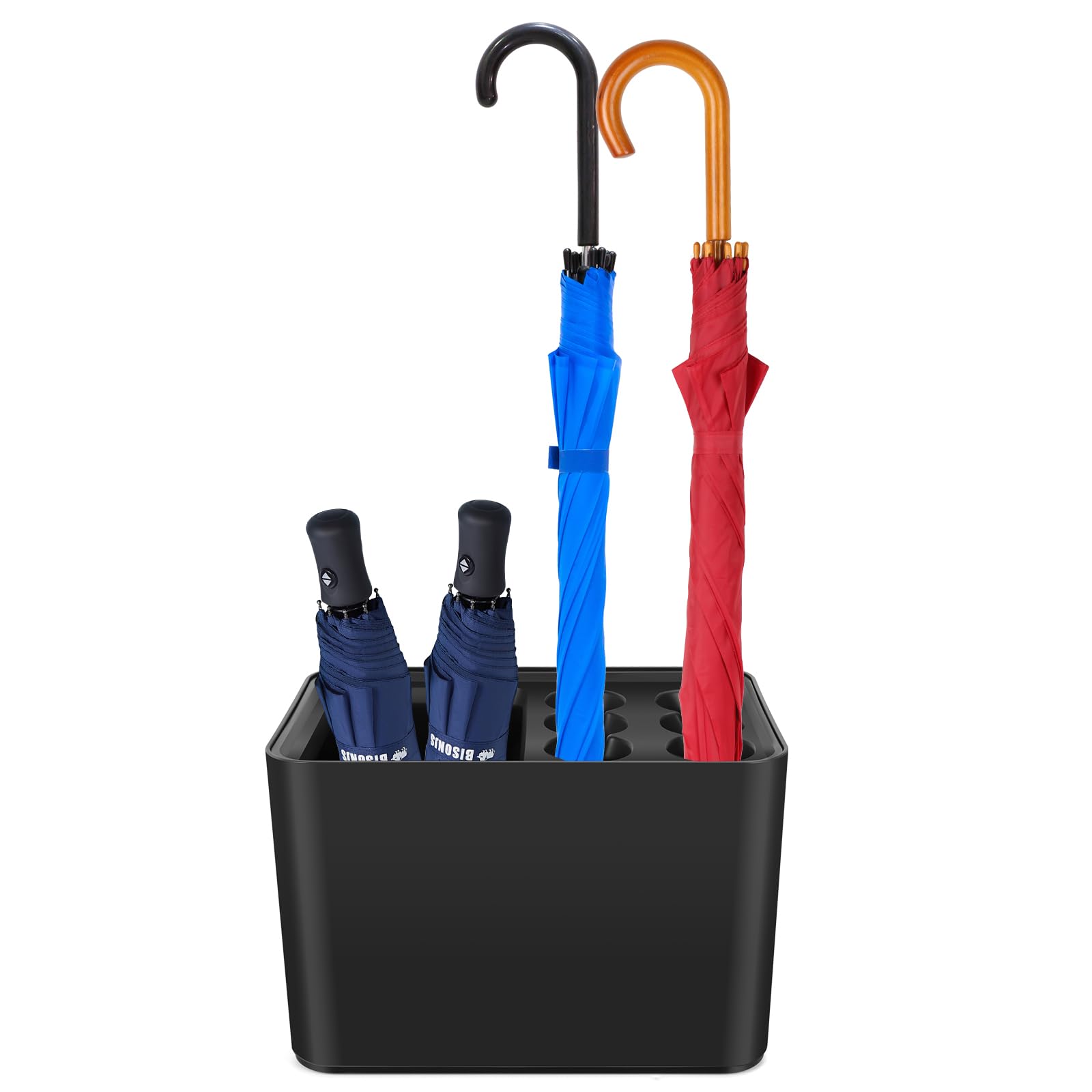 Yummy Sam Soporte de paraguas con bandeja de goteo extraíble para contener 10 paraguas, soporte rectangular de plástico para parag