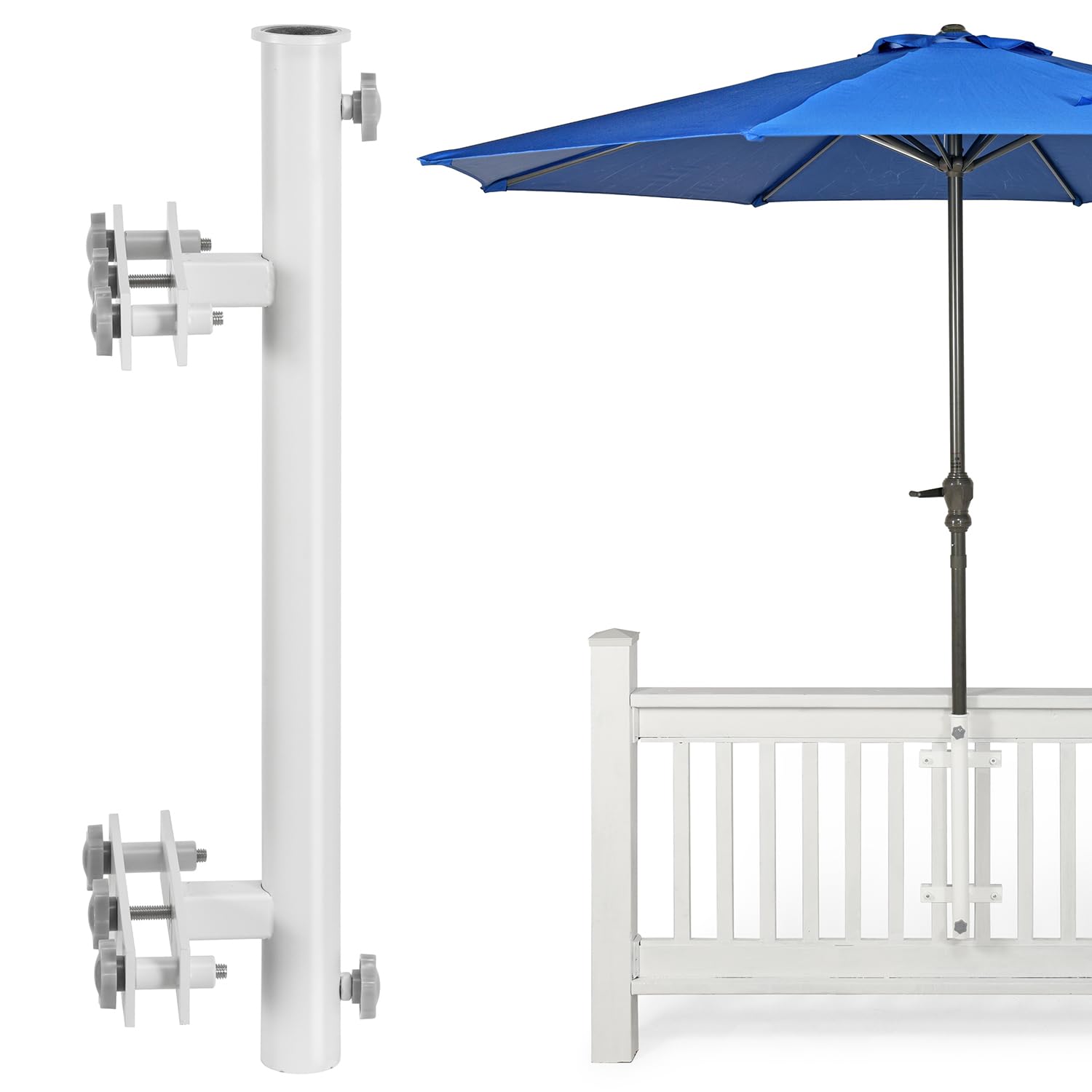 Soporte para sombrilla de patio, soportes para sombrilla para exteriores, base de sombrilla resistente y abrazadera para barandill