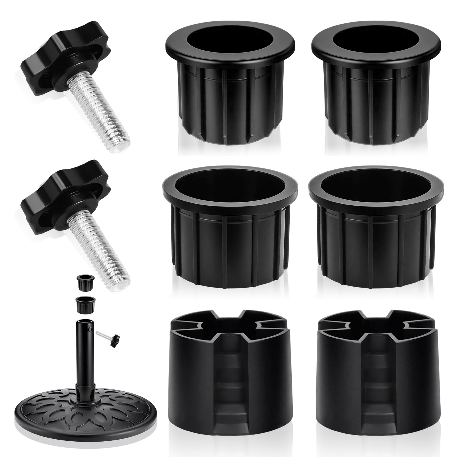 Juego de 8 piezas de base de sombrilla de patio al aire libre, cubierta de enchufe de anillo y piezas de repuesto de tapa, base de