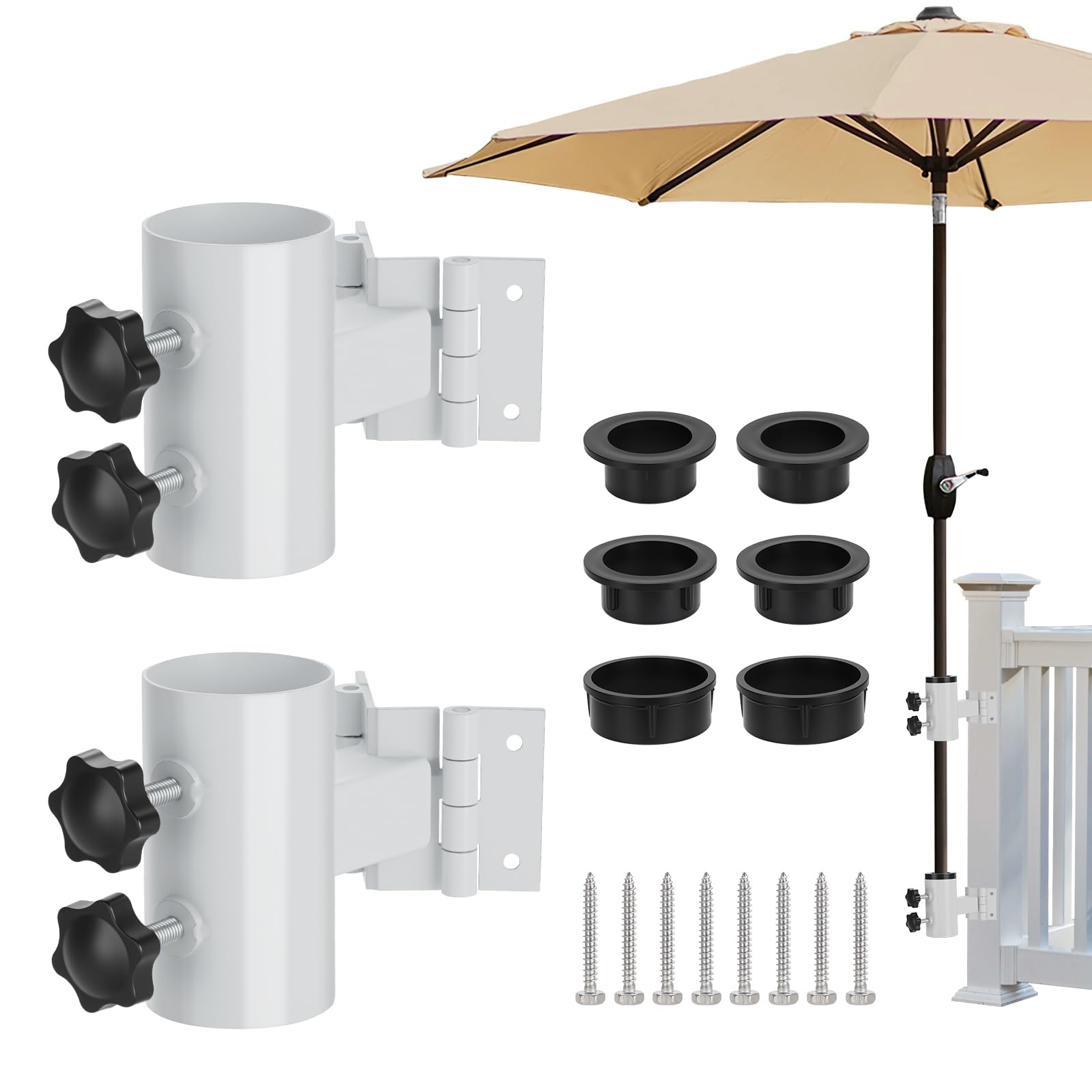 Patio Umbrella Holder Heavy Duty Adjustable Metal Umbrella Clamp Stand Mount Attaches to Railing, Outdoor Courtyard, Balcony, Boat