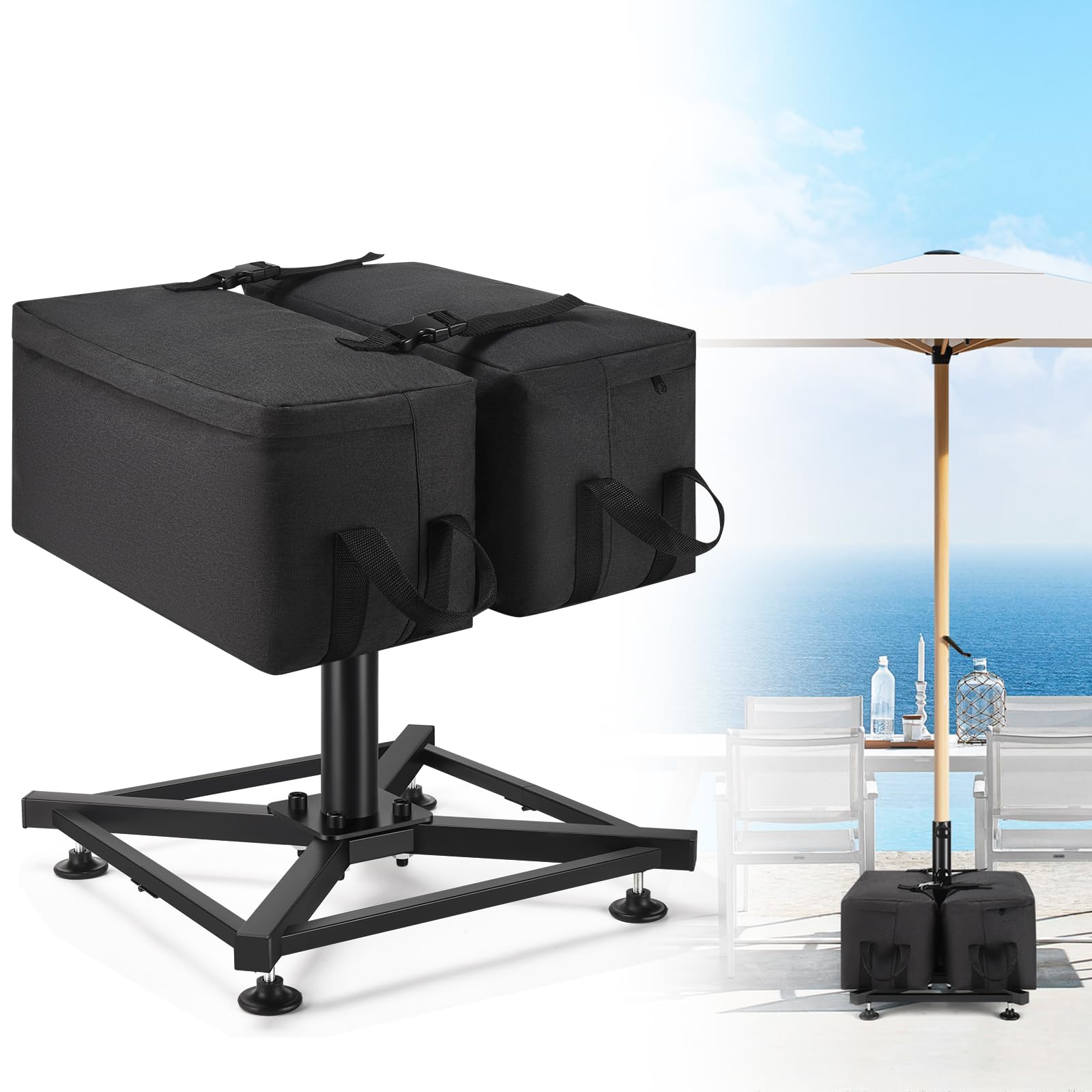 CAROD Base de metal para sombrilla de patio y 2 bolsas rellenables de arena de 100 libras, soporte plegable para sombrilla al aire