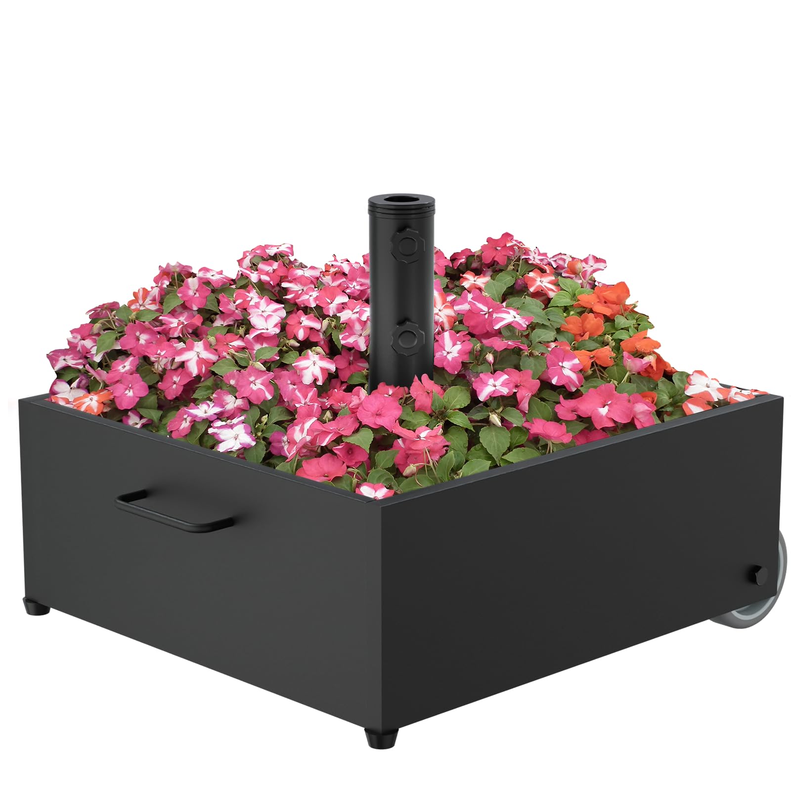 Base de paraguas de flores resistente con ruedas, soporte de paraguas rellenable máximo de 200 libras, base de paraguas de metal p