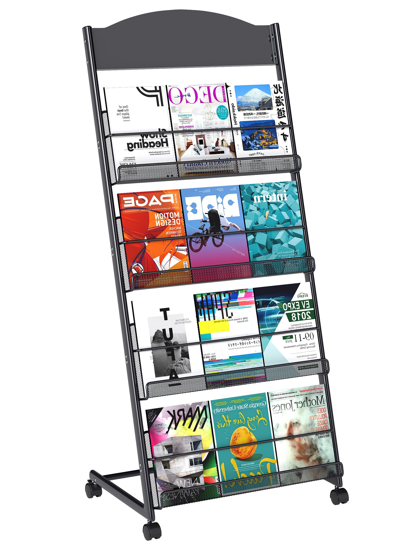 Baoz Revistero de pie de 4 capas, soporte de exhibición de folletos, exhibición de revistas desmontable con ruedas, soporte de met