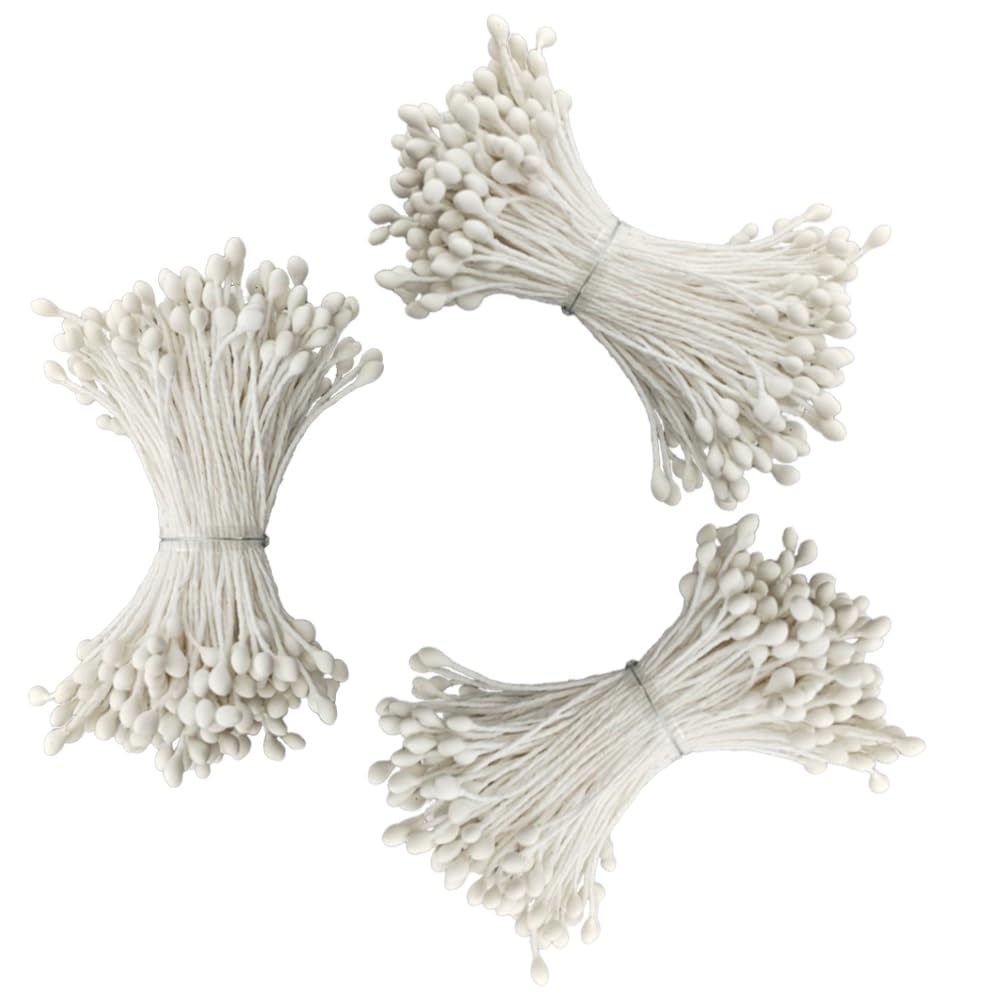 HAHIYO 700Pcs 3mm White Matte Double Head Flower Stamen Pistil for Flower Making Scrapbook Decoration – Handmade Artificial Flower