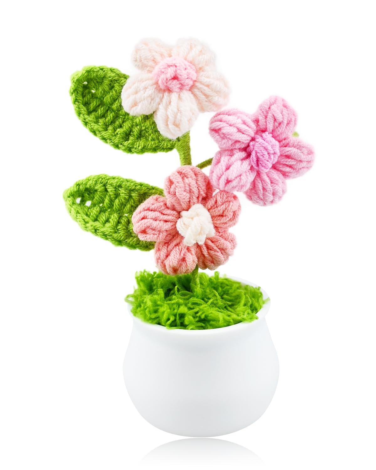 Handmade Crochet Flower Potted Plant, Mini Knitted Artificial Flowers for Car Dashboard Home Office Desk Decor, Small Crochet Puff