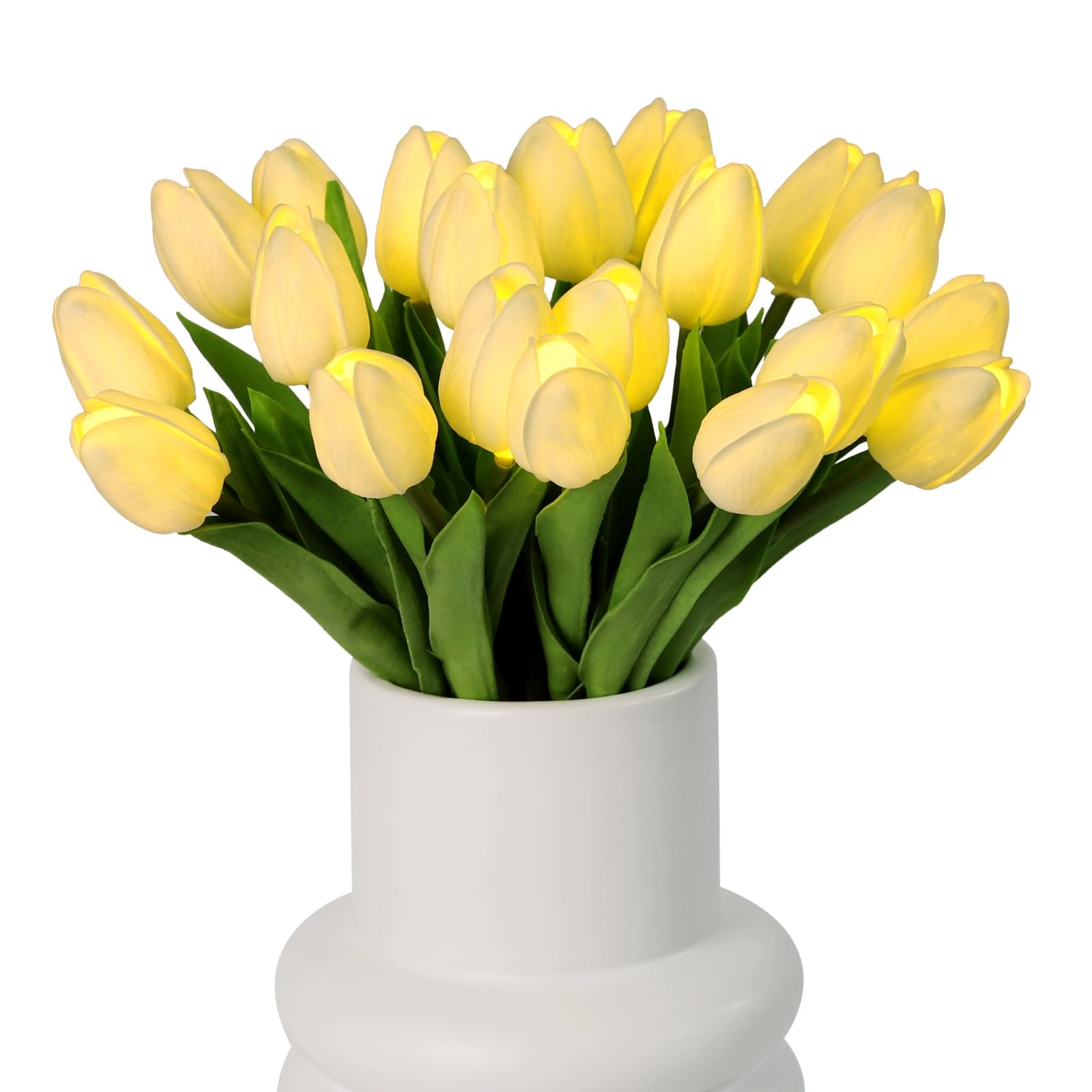 Ramo de tulipanes artificiales preiluminados, 20 unidades, con luz LED, tulipanes artificiales de tacto real de 15 pulgadas para d