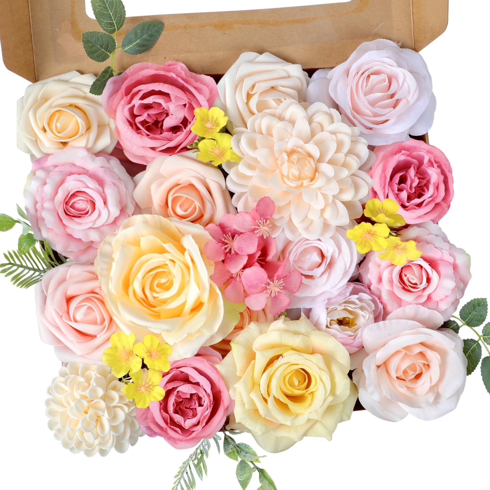 Flores artificiales para boda, flores de seda con tallos, flores rosas y amarillas, arreglos florales de peonía de rosas, ramos de