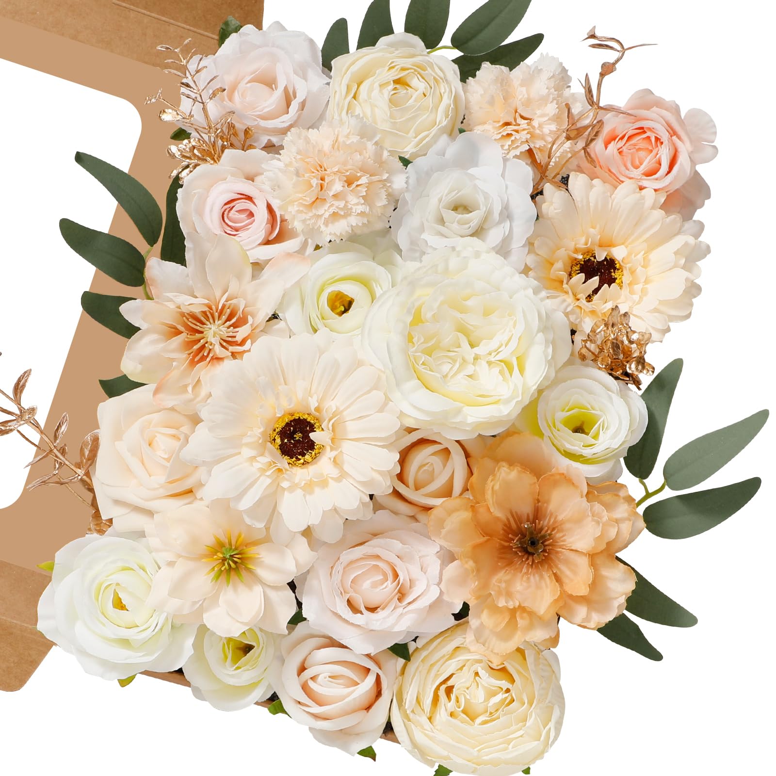 Serwalin Flores artificiales de champán, flores falsas de seda para ramos de boda, flores de pastel, centros de mesa, baby shower,