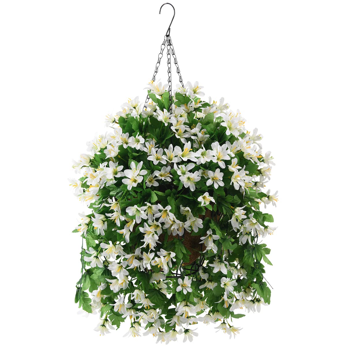 INQCMY Flores colgantes artificiales en cesta para decoración de patio y jardín, seda sintética violeta en maceta, resistente a lo