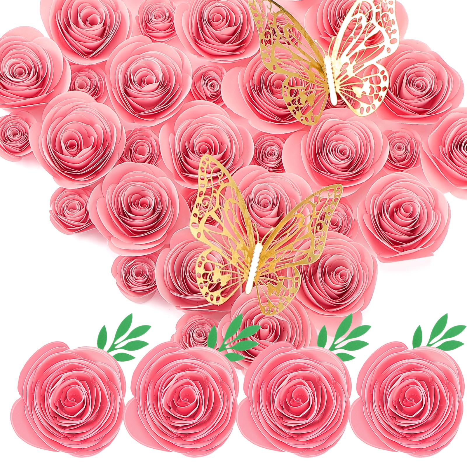 Zeyune 36 Pcs 3D Rolled Artificial Roses Paper Flower for Graduation Cap Decoration Wall Decor Mini Butterfly DIY Craft Gift for G
