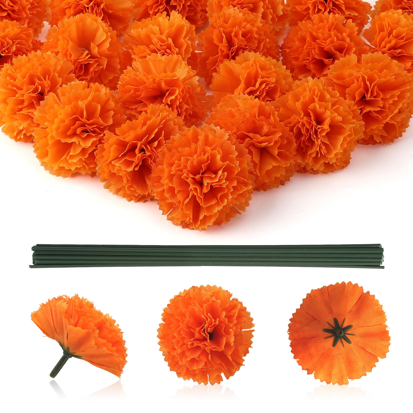 Marigold Flowers, 30Pcs Marigolds Artificial Flowers, Silk Marigold Flower Heads Bulk with Stems, Orange Flower for Day of The Dea