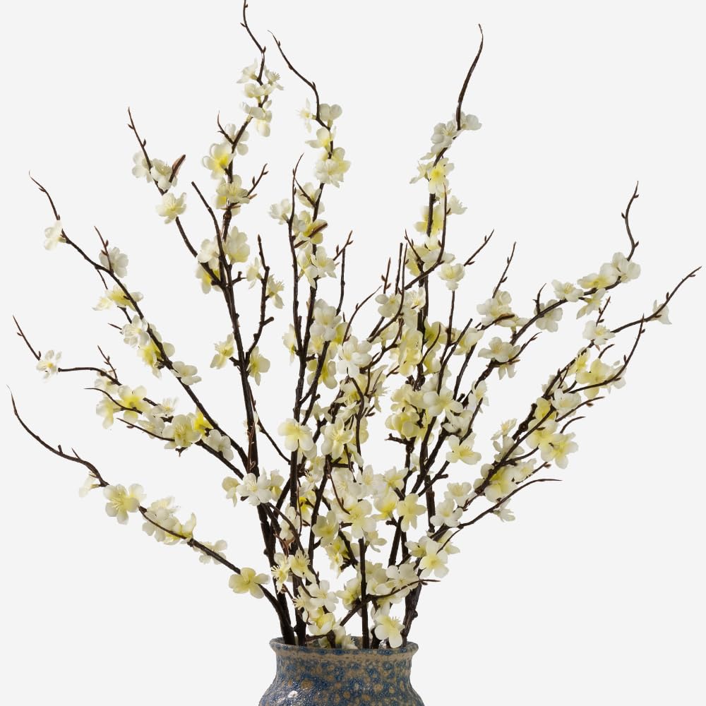 LESING 4 piezas de flores de cerezo artificiales, ramas de flor de cerezo de seda falsa, arreglo alto de flores de durazno para de