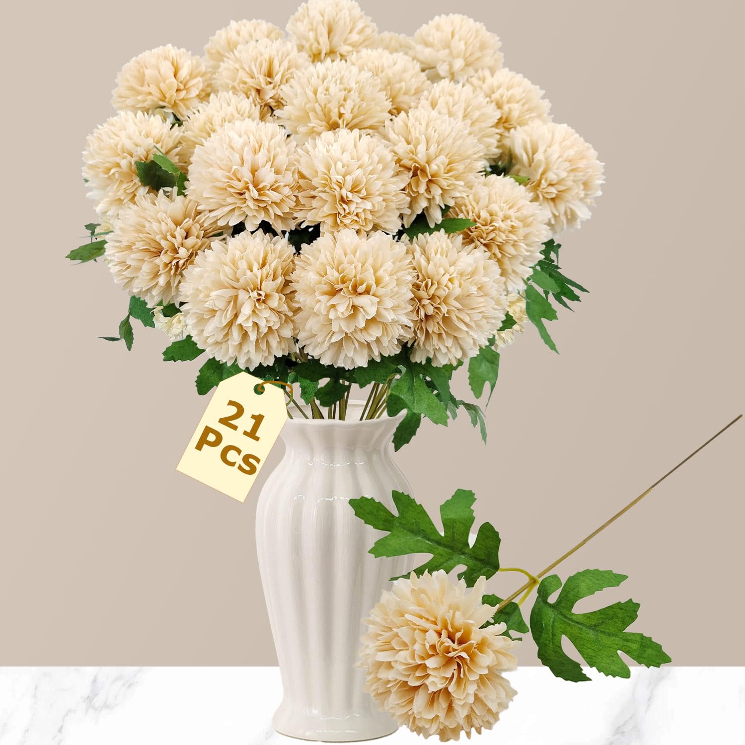21 flores artificiales de crisantemo para mamás falsas, arreglos florales con tallos largos para bricolaje, ramo de boda, hogar, c