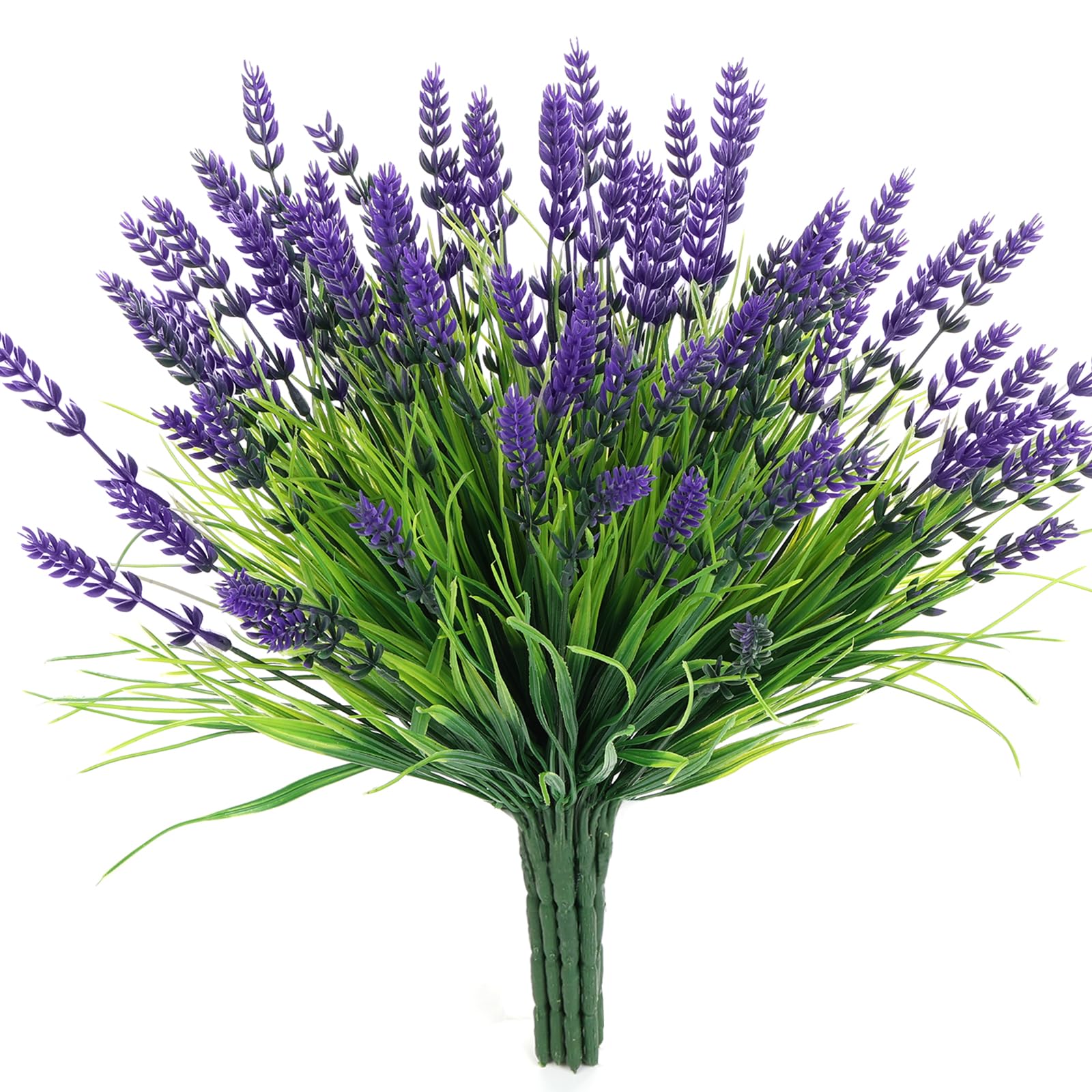 12 Bundles Faux Lavender Flowers with Monkey Grass – Fake Flowers for Pot UV Resistant Outdoor Artificial Flowers for Garden Patio