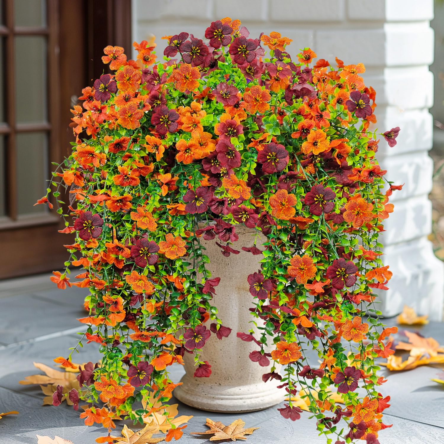 Flores colgantes artificiales para decoración al aire libre, 4 piezas de plantas colgantes de imitación de otoño, resistentes a lo