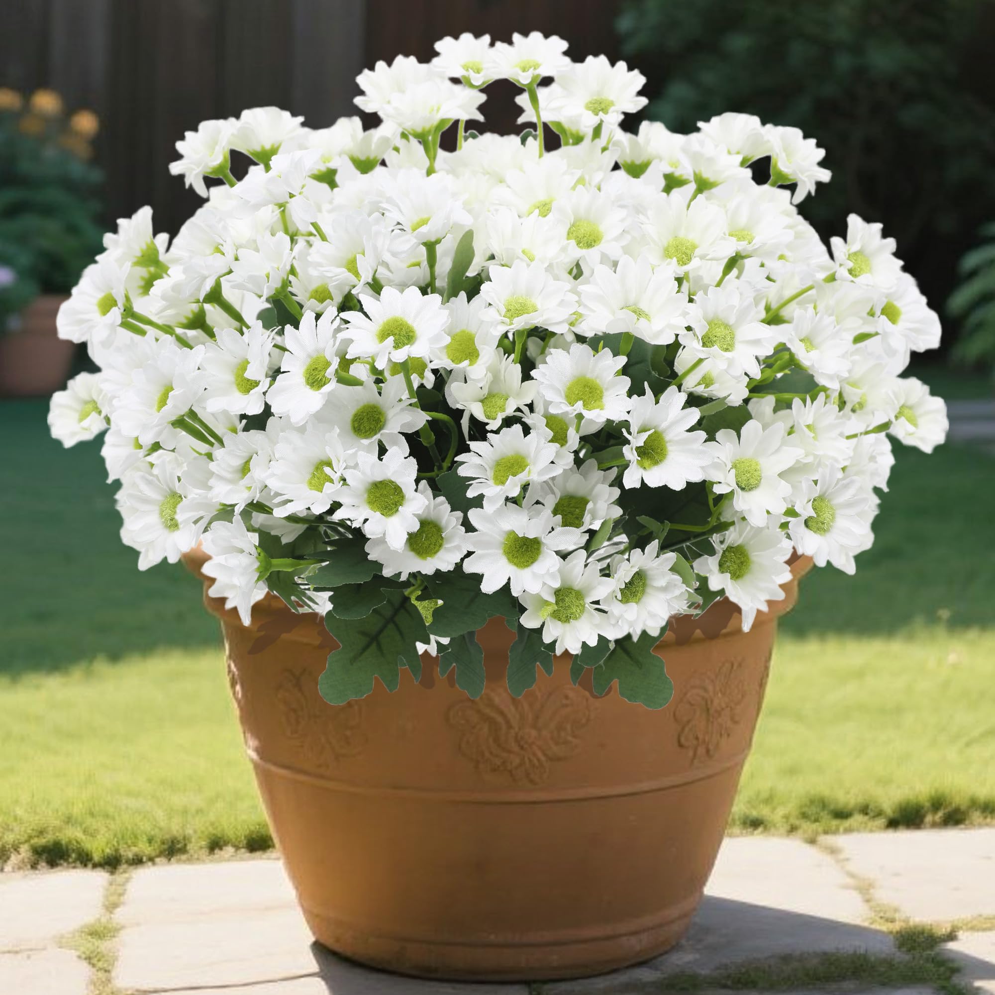 Daisy Flowers Artificial for Outdoors, 12 Bundles Realistic Fake Wildflowers, Fake Flowers for Outdoor Planters, Faux Plants with
