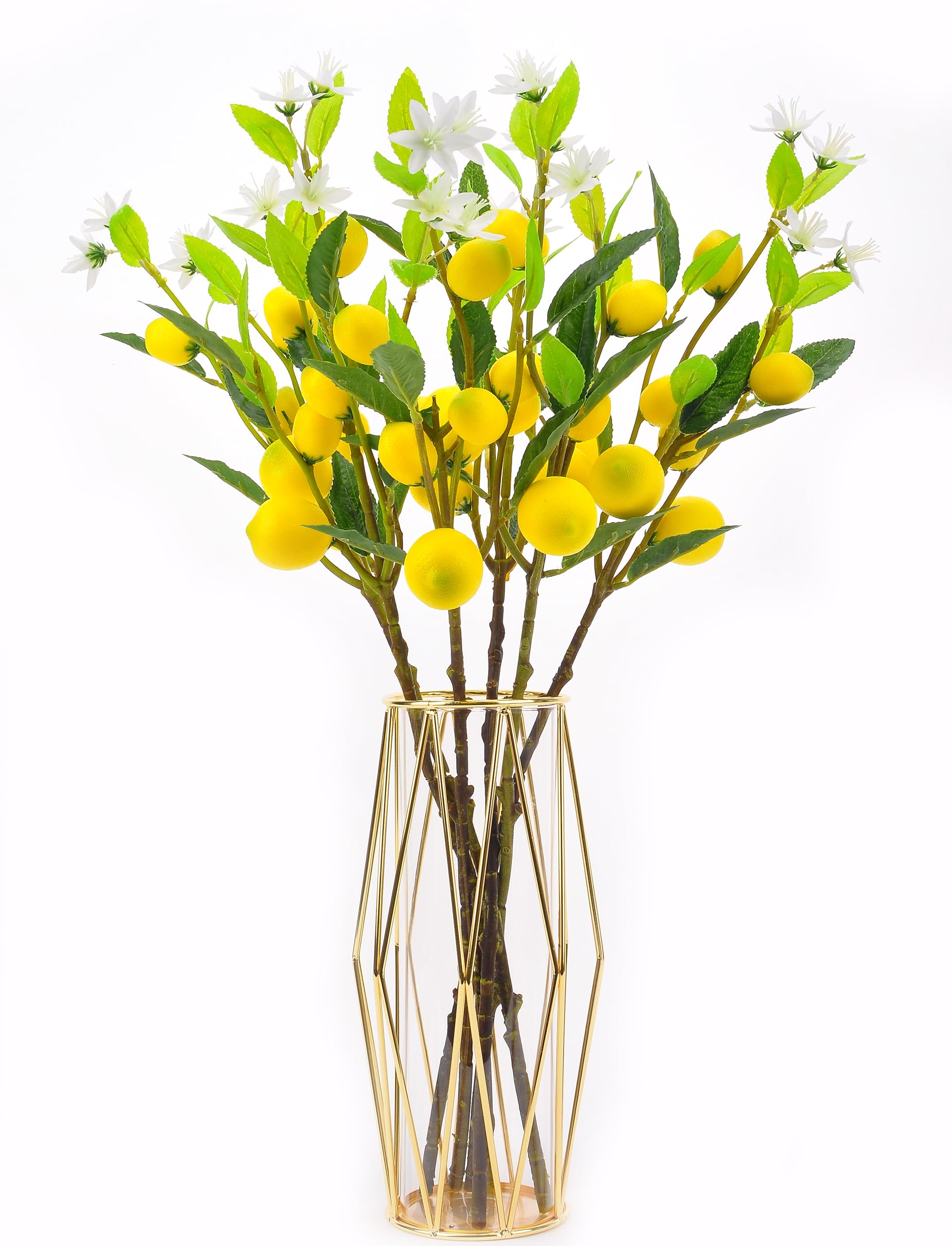 Decoración artificial de limón, planta verde hecha a mano de 24 pulgadas, flor de fruta de limón simulada, adecuada para decoració