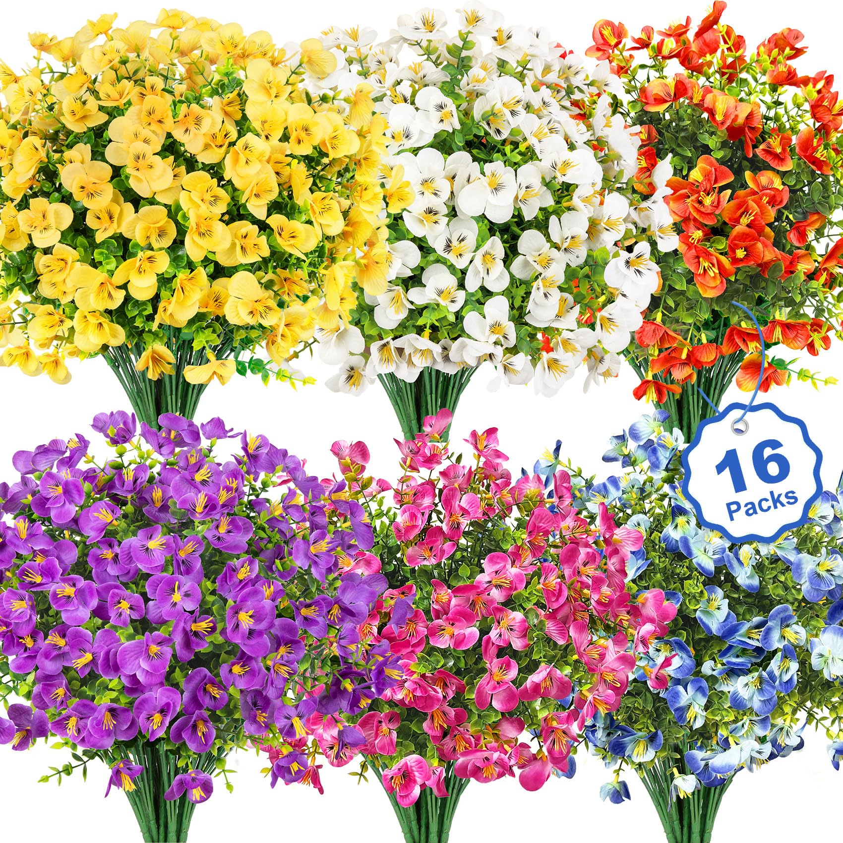 16 paquetes de flores artificiales para decoración al aire libre, flores falsas de pensamiento de seda resistentes a los rayos UV,