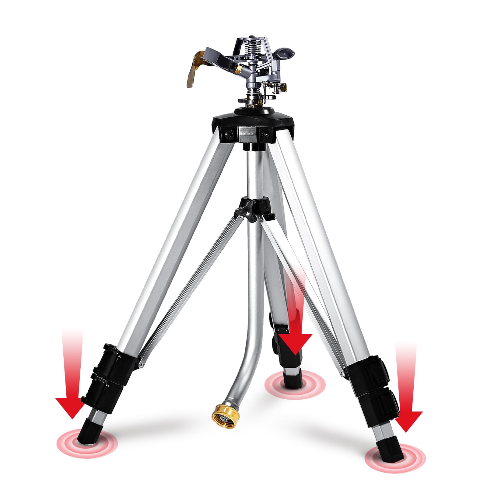 YAMATIC Aspersor de impacto en base de trípode ajustable, área grande de 360 grados, rociador pulsador ajustable resistente para r