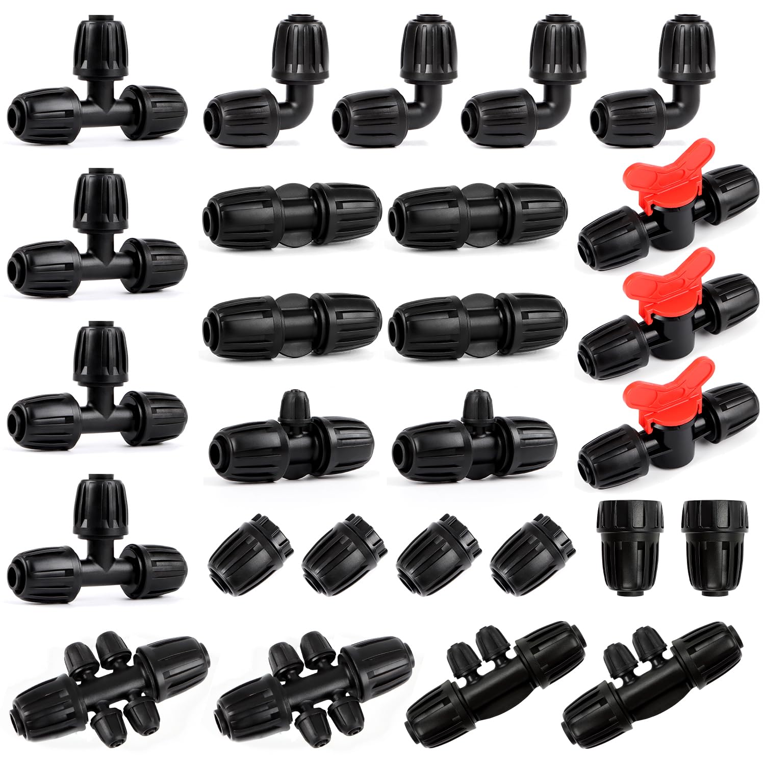 Kit de accesorios de riego de tubería de goteo de 1/4 pulgadas, juego de 40 piezas de conectores de presión de línea de goteo de 1