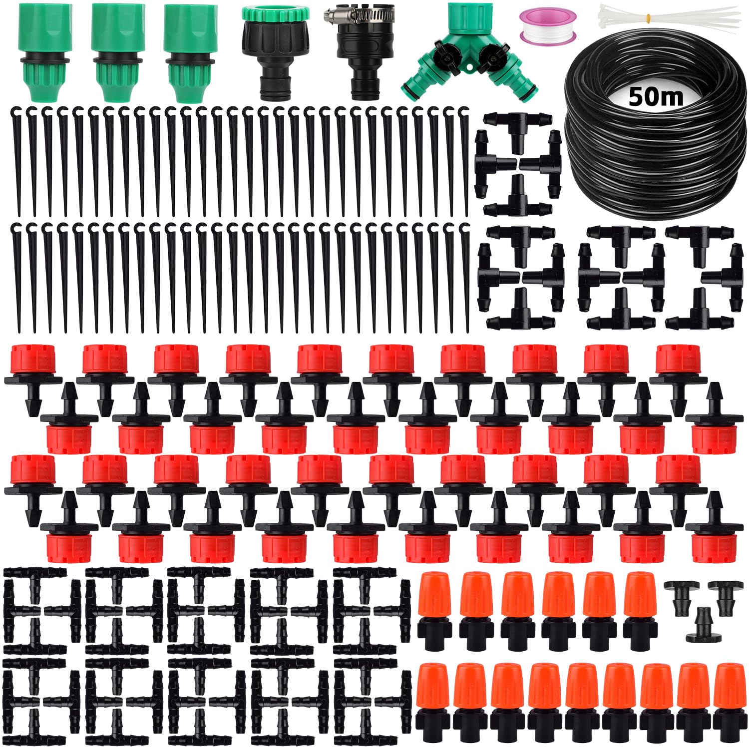 Sistema de riego automático de jardín de 164 pies, paquete de 200 unidades, kit de riego por goteo de 1/4 pulgadas, tubo de distri