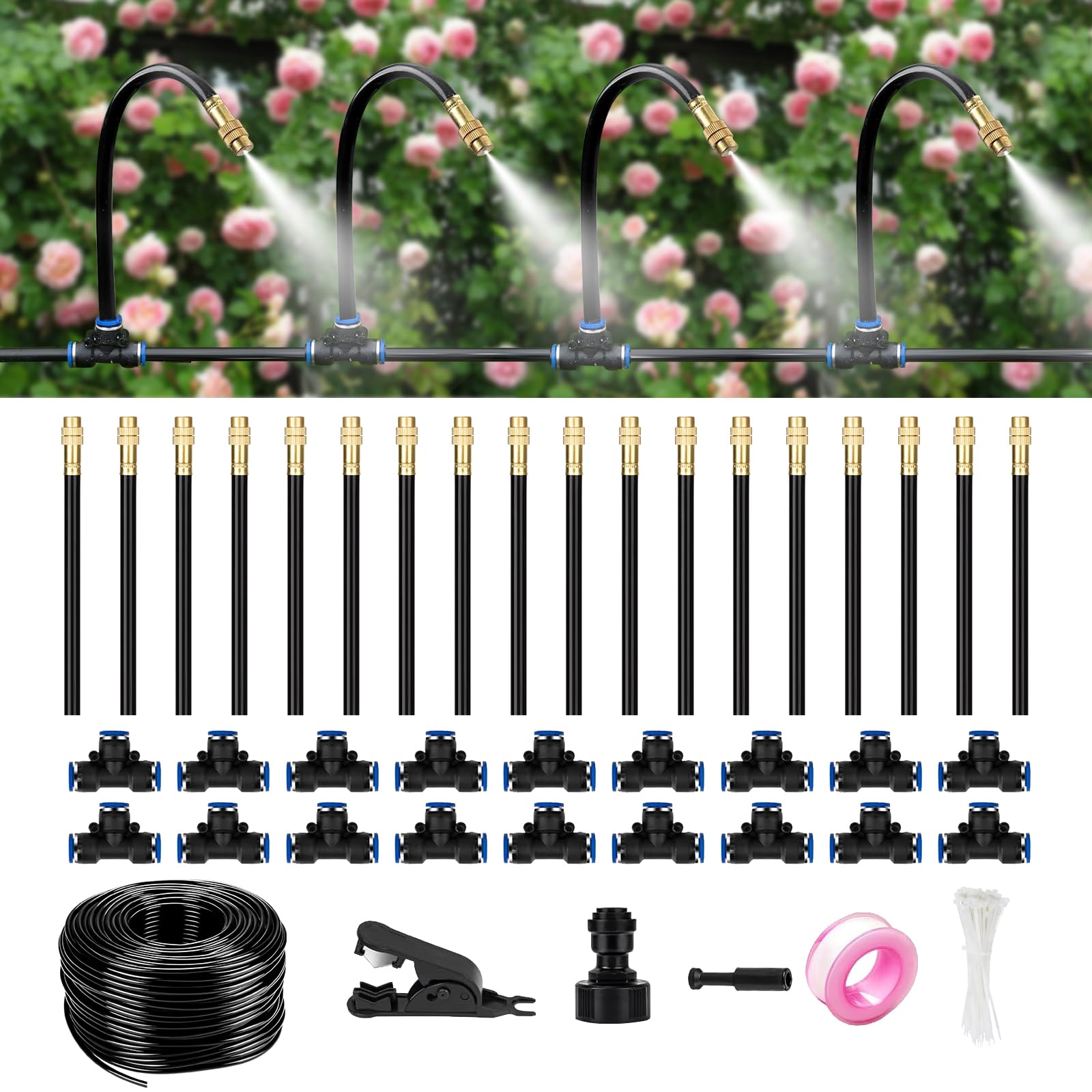 Sistema de riego por goteo de 60 pies para jardín, kit de riego automático flexible de 360° con boquillas ajustables, manguera de