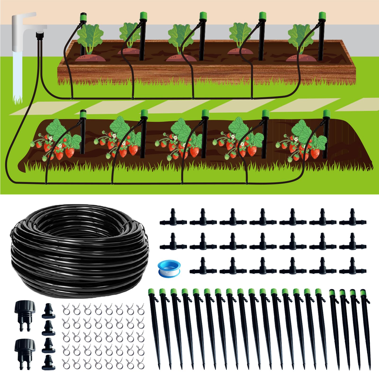 Sistema de riego por goteo, sistema de riego con tubo de distribución de 164 pies y 1/4 de pulgada, sistema de riego de jardín de