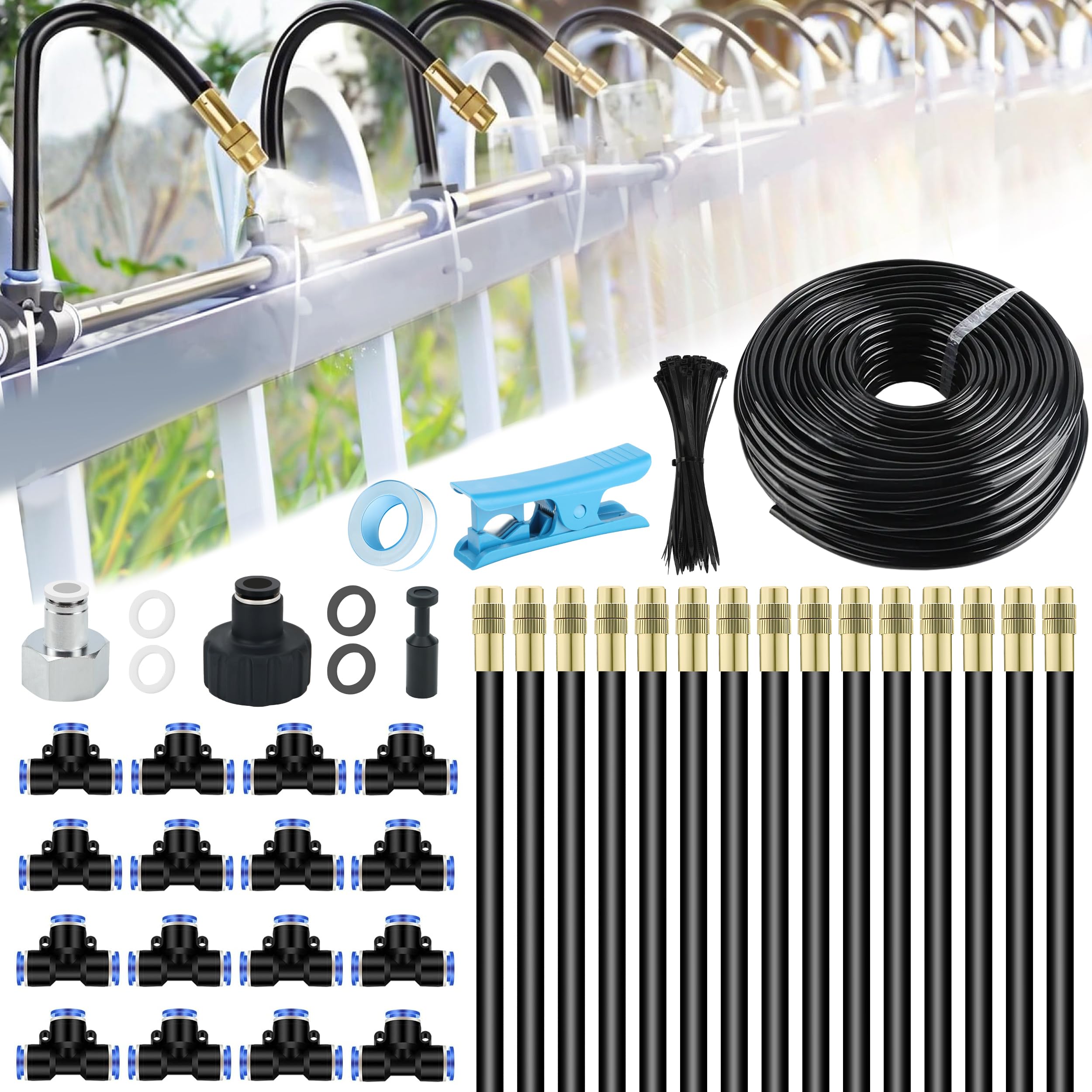 Kit de sistema de riego por goteo, conector rápido automático de 164 pies, sistema de riego de jardín ajustable para invernadero,
