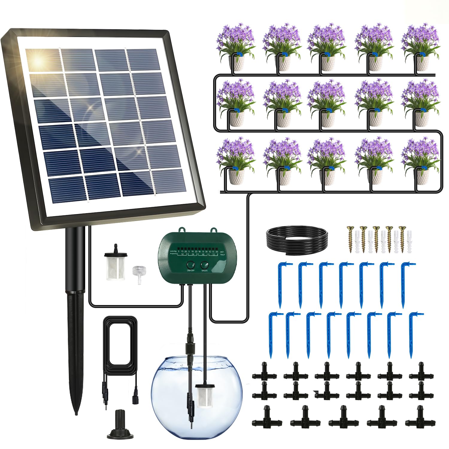 Breeze Touch Sistema automático de riego por goteo solar de 50 pies, kit de riego por goteo con 12 modos de temporización, compati