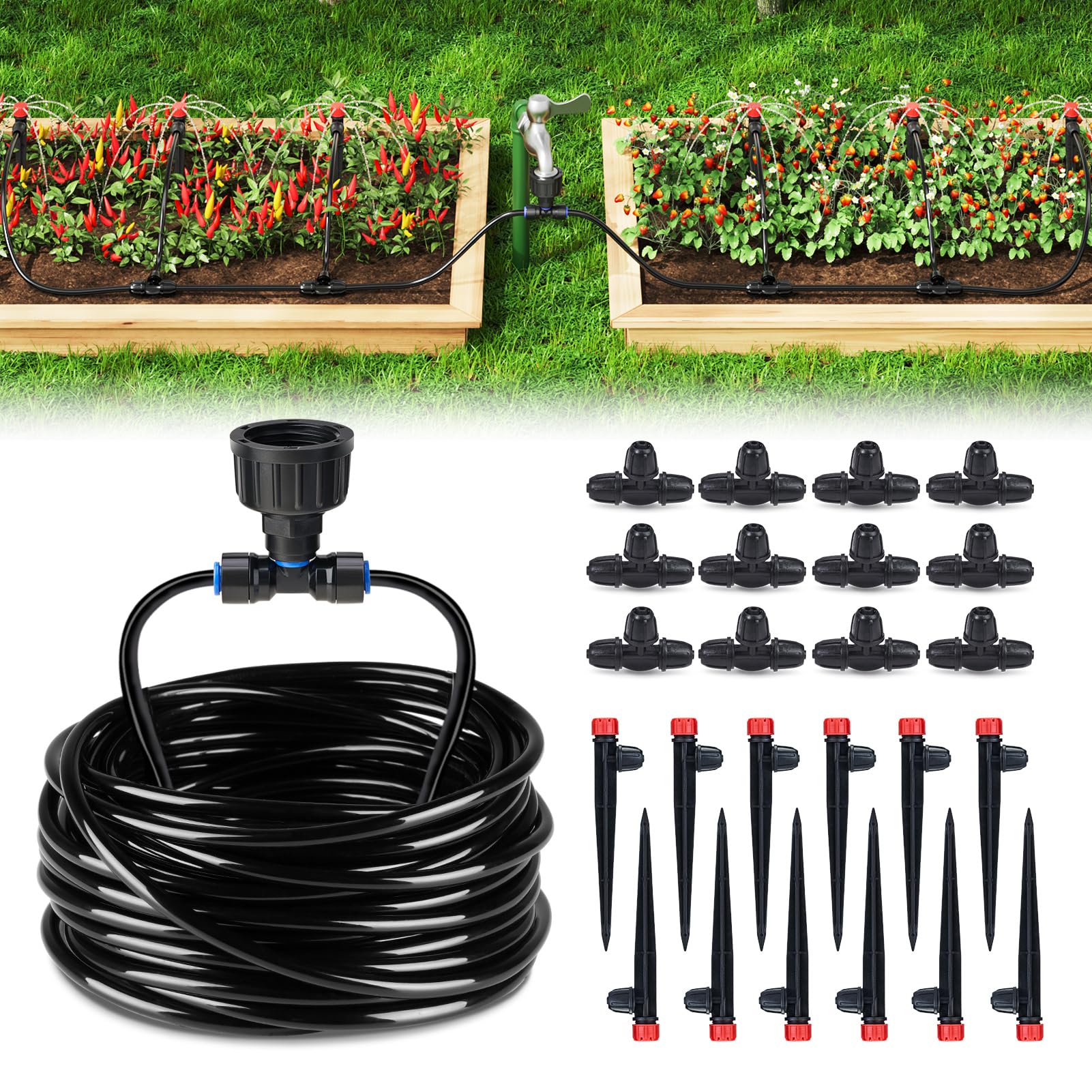 Kit de sistema de riego de jardín de 75 pies, sistema de riego de invernadero, sistema de riego de jardín con tubos de 1/4 pulgada
