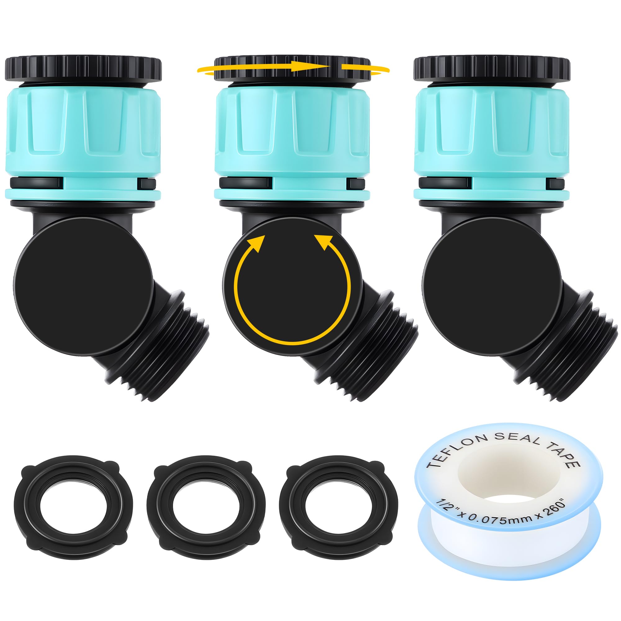 Enhon 3 conectores giratorios ajustables de 180° y 360°, adaptador de manguera de jardín extensor de manguera de rosca GHT de 3/4