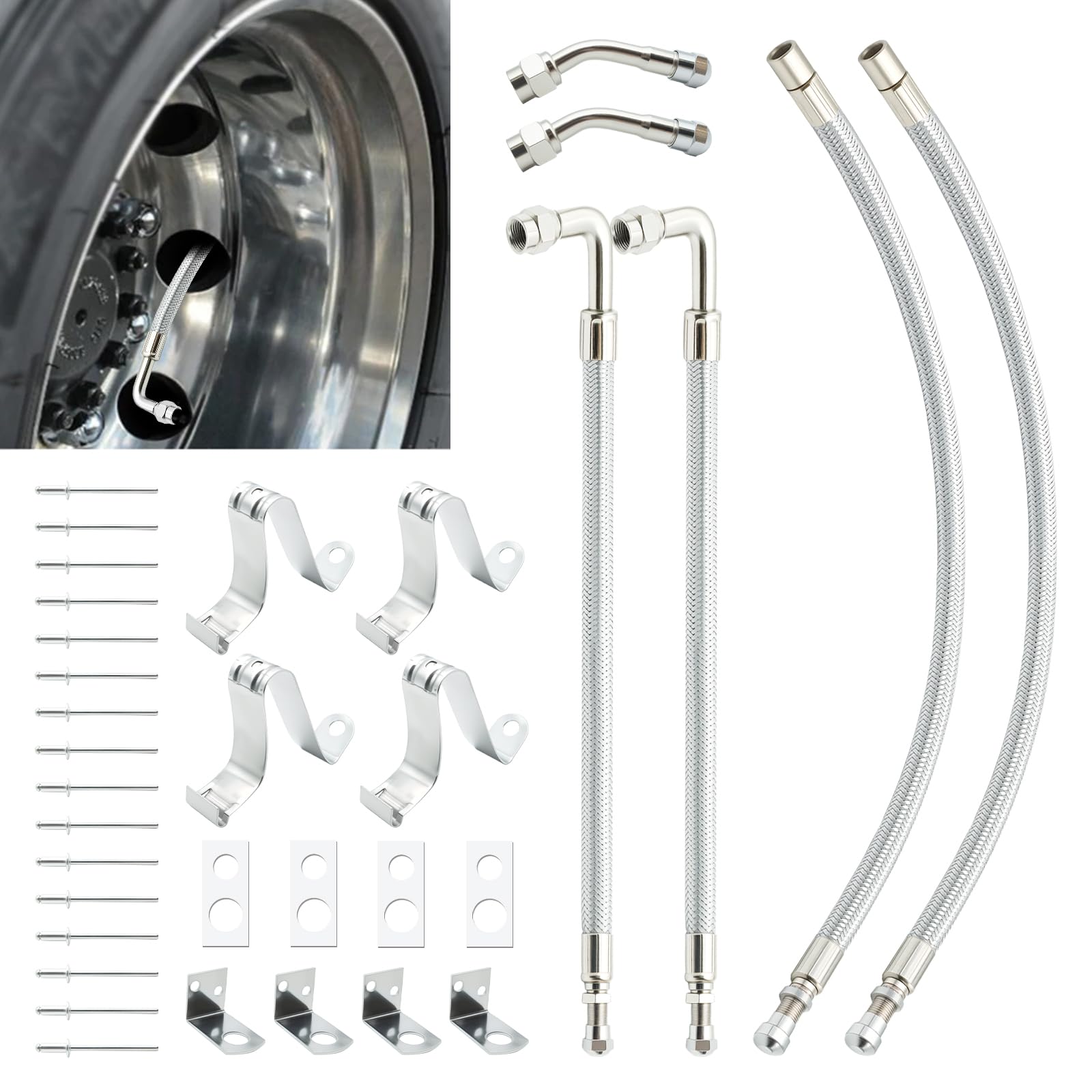 Kit de extensores de vástago de válvula doble, extensión de válvula de neumático trenzado de acero inoxidable con 2 mangueras rect