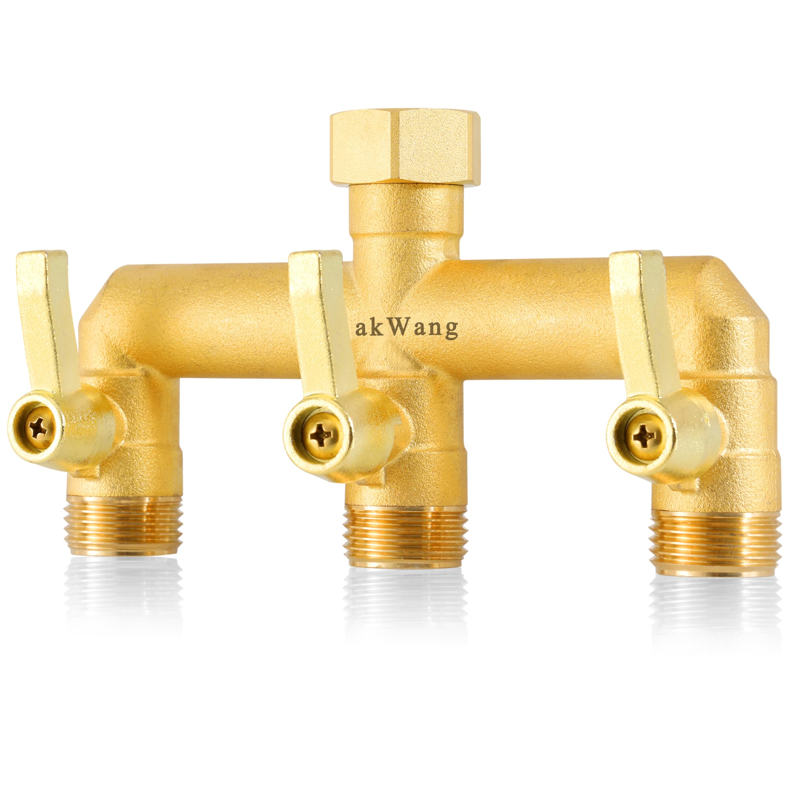 Adaptador de grifo de manguera de latón de flujo completo, divisor de manguera de jardín de 3 vías, mango de metal extendido y de