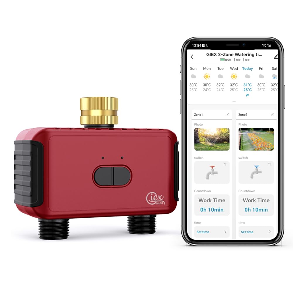 GIEX ZIGBEE – Temporizador de rociadores de 2 zonas GX-03, controlador de riego inteligente para manguera de jardín, requiere TUYA