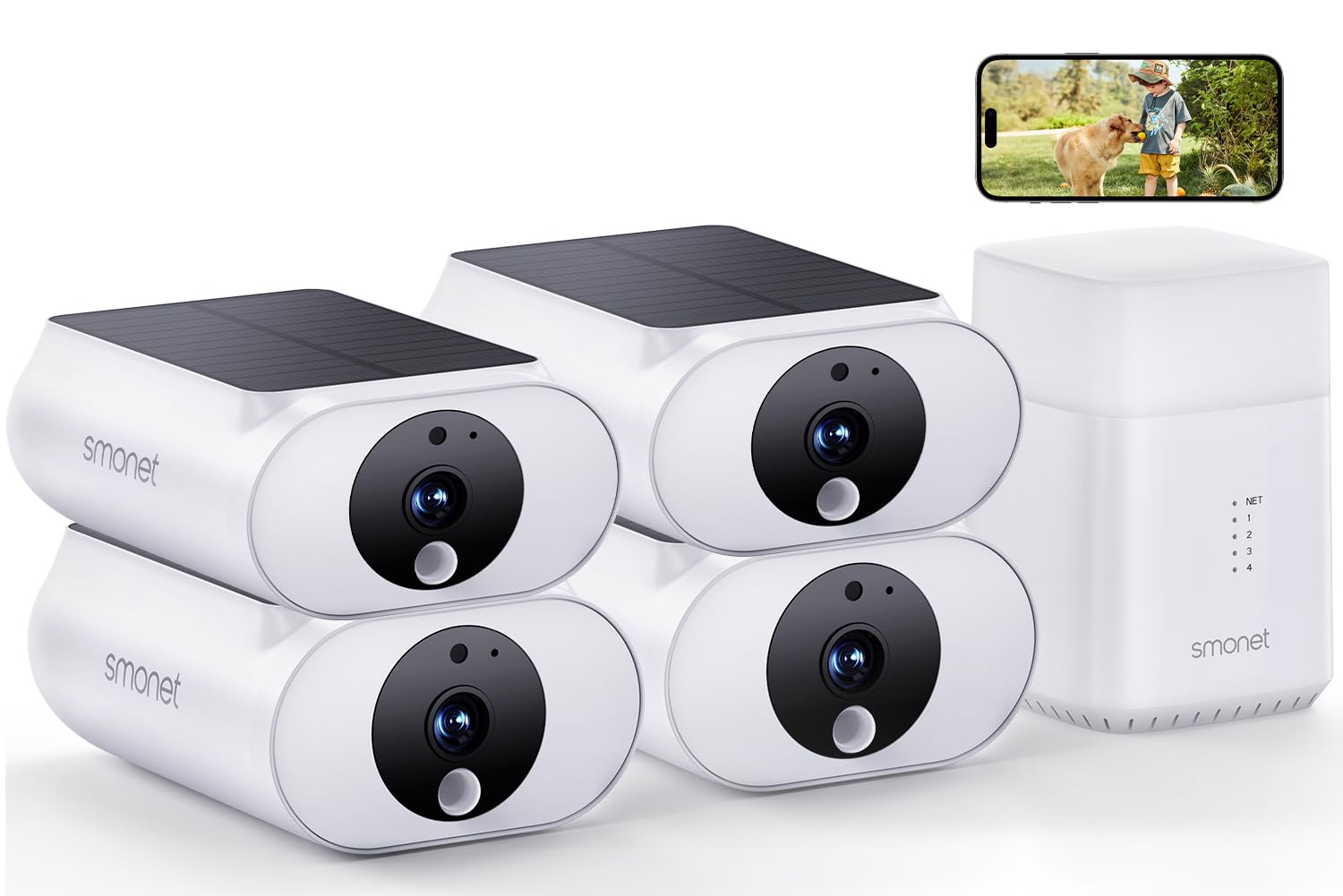 Cámaras de seguridad solar WiFi de 2.4 y 5 GHz inalámbricas para exteriores, sistema de seguridad para el hogar QHD 2K, kit de 4 c